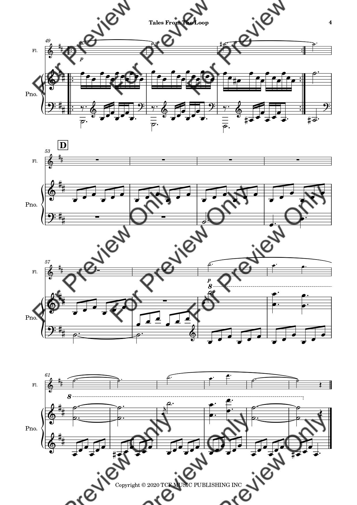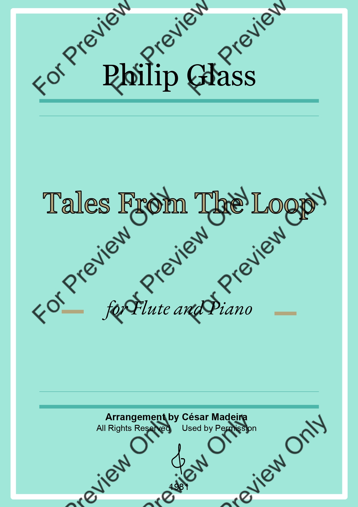 Tales From The Loop by Philip Glass. Arrangement for Flute and Piano. With Full Score and Individual Parts. Have fun!