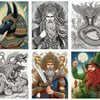Spectacular coloring images of mythological beings.