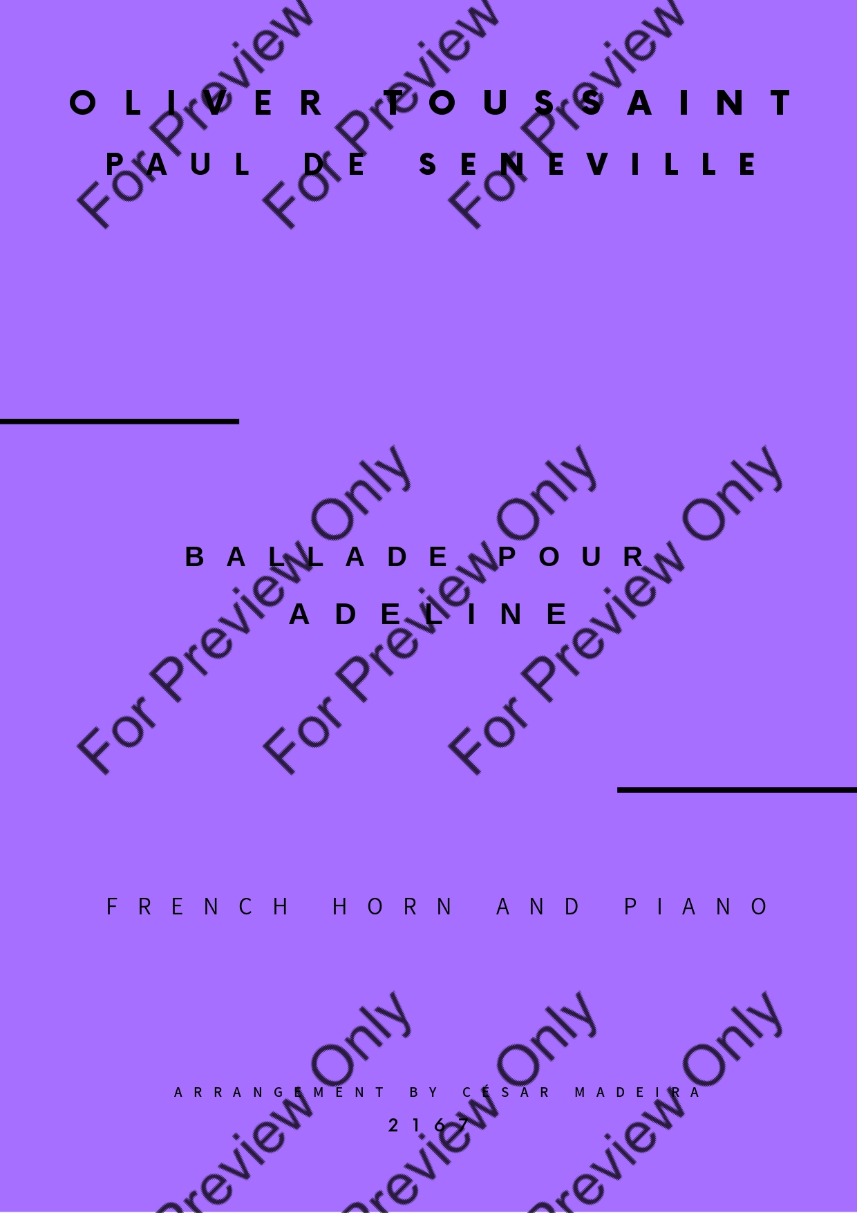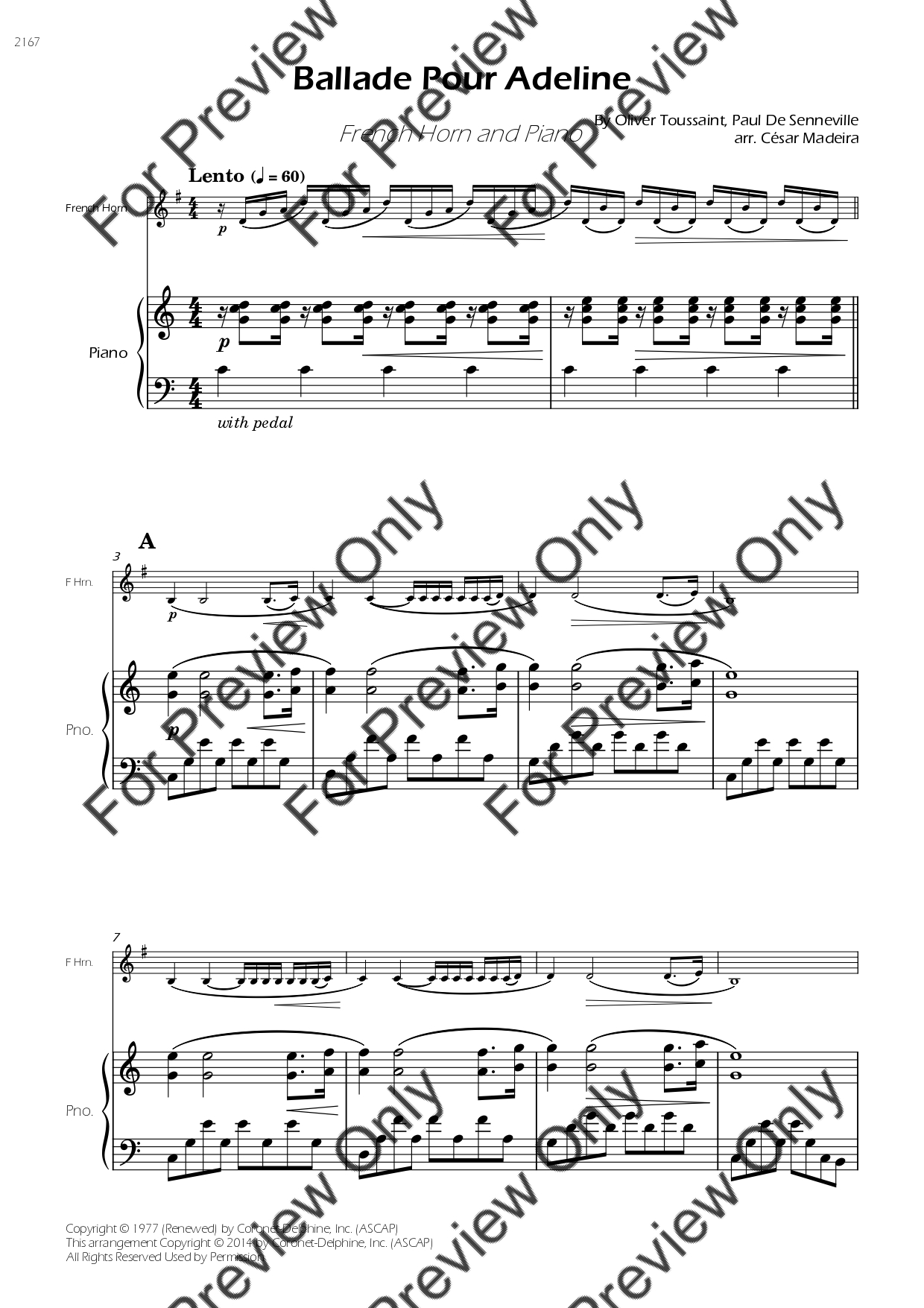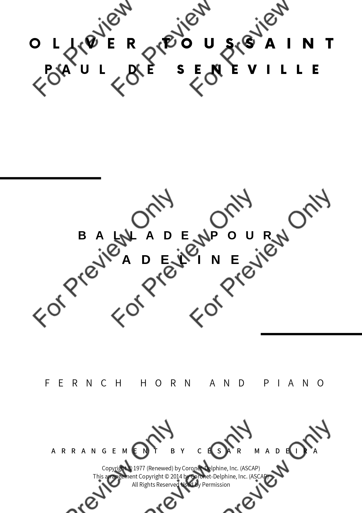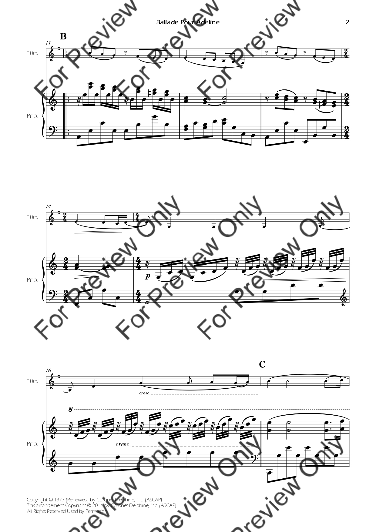 Ballade Pour Adeline by Paul de Seneville. Arrangement for French Horn and Piano. With Full Score and Individual Parts. Have fun!