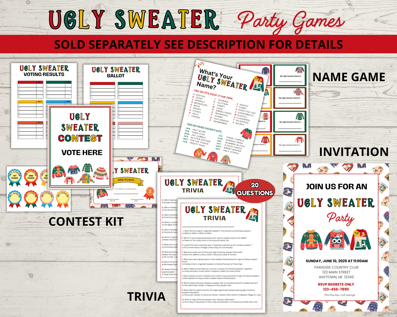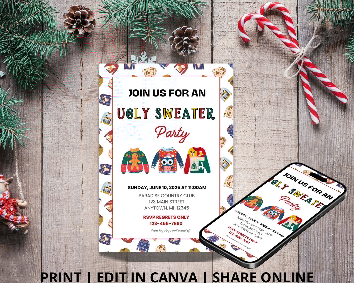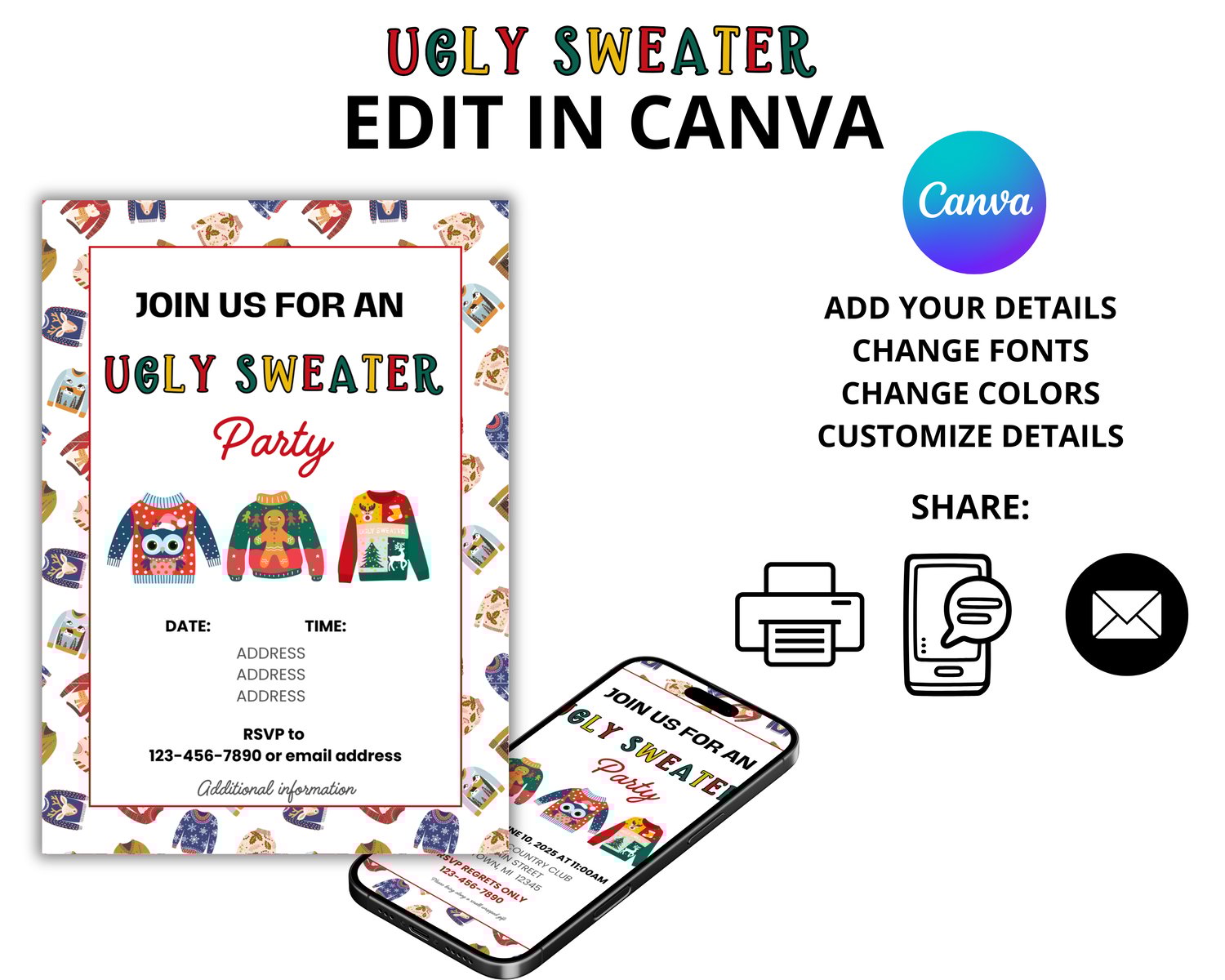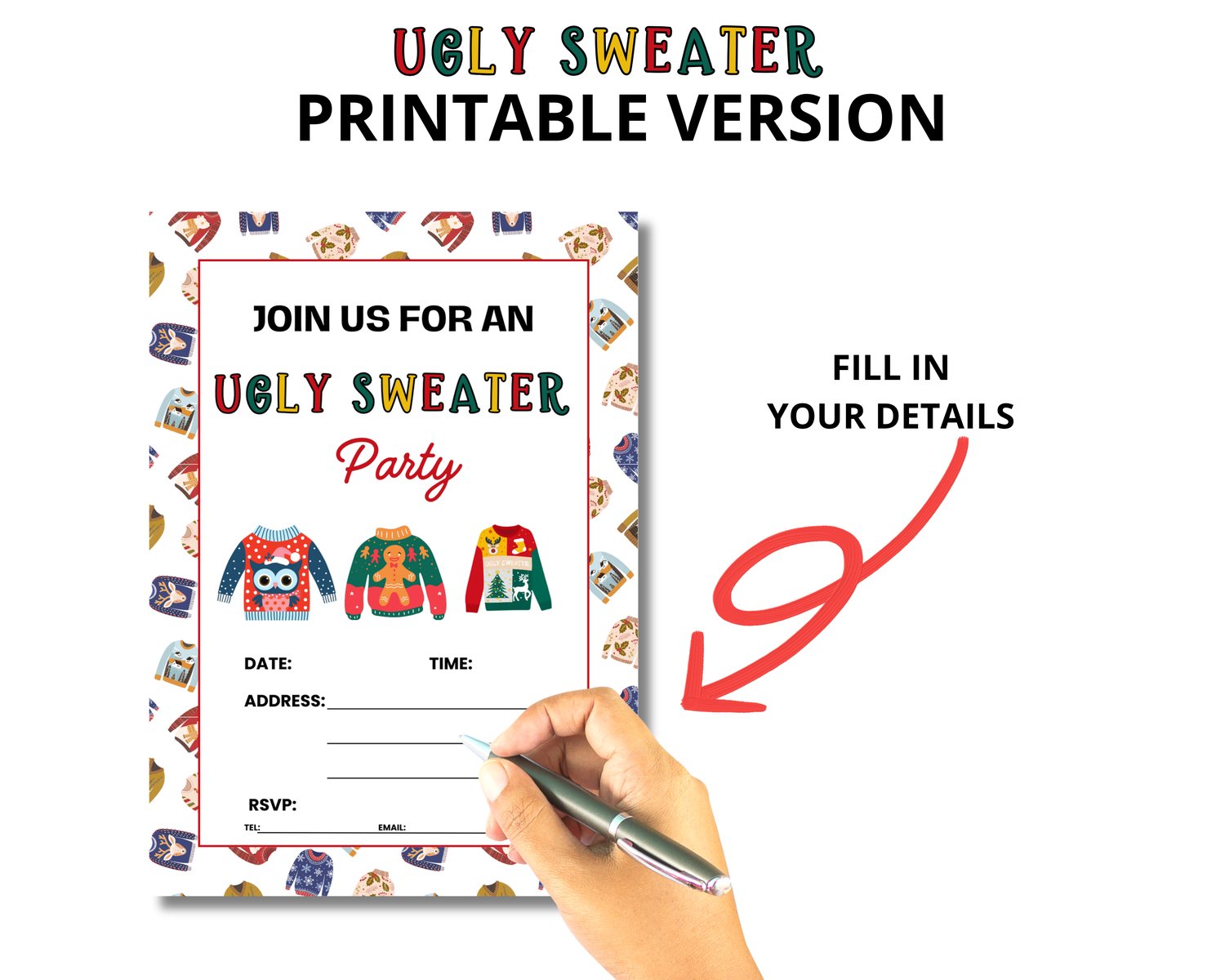Ugly Sweater Party Invitation - Editable and Printable Version
