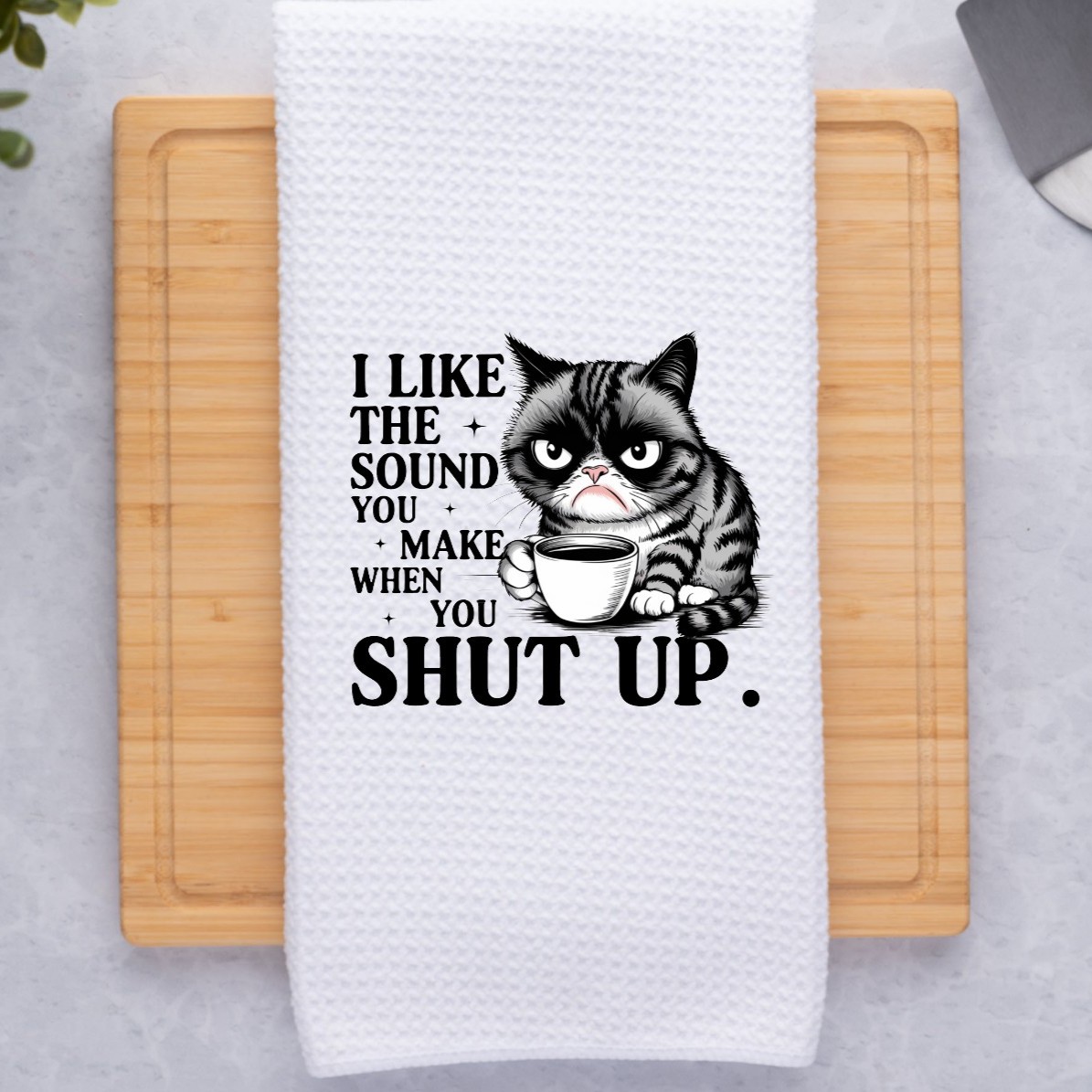 I Like The Sound You Make When You Shut Up Cat Funny Sarcastic Kitchen Dish Towel