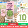 Kit Imprimible Portamacetas Cactus Dia Del Amigo Editable