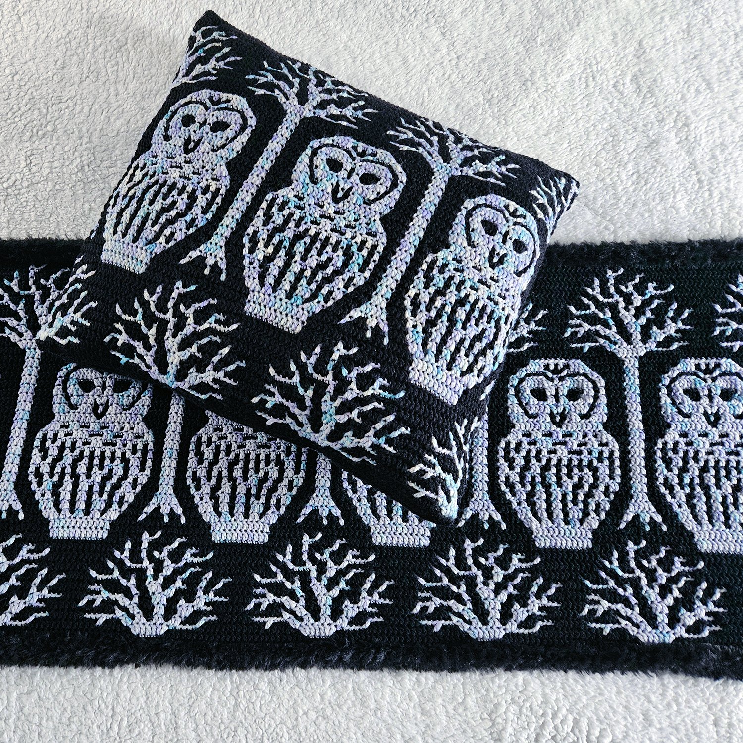 Digital chart and instructions in English (US Terms) with detailed photos for creating 3 nocturnal inspired patterns in mosaic crochet. These patterns uses the overlay mosaic crochet technique.