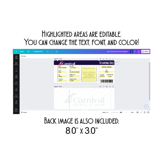 Carnival Cruise Ticket Boarding Pass Template, Editable Surprise Trip Vacation Gift Voucher, Canva Instant Download Cruises