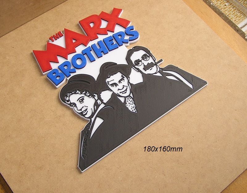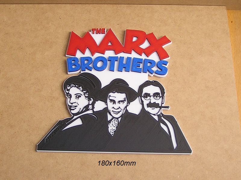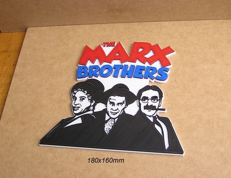 The Marx Brothers Poster, Sign, Logo of the movie, these STL and Gcode files have been created to be printed in various colors with any FDM type printer. The color changes have been made with the Elegoo Neptune 3 Pro printer, but they can be printed on any printer.