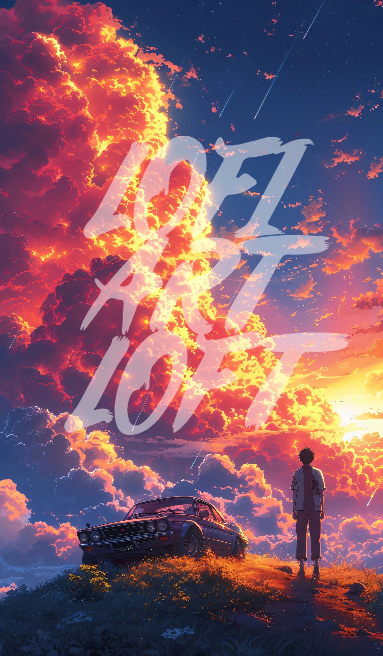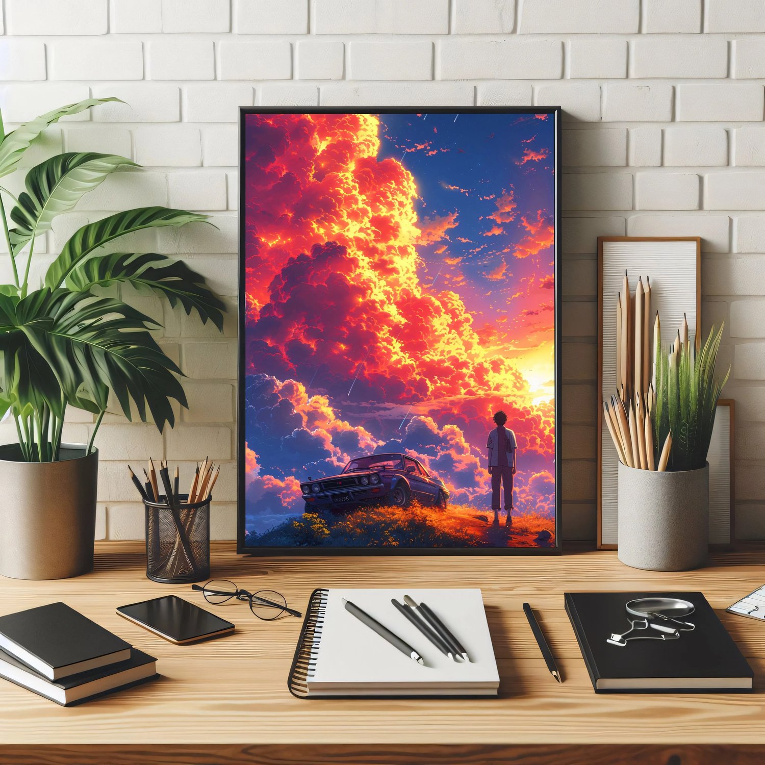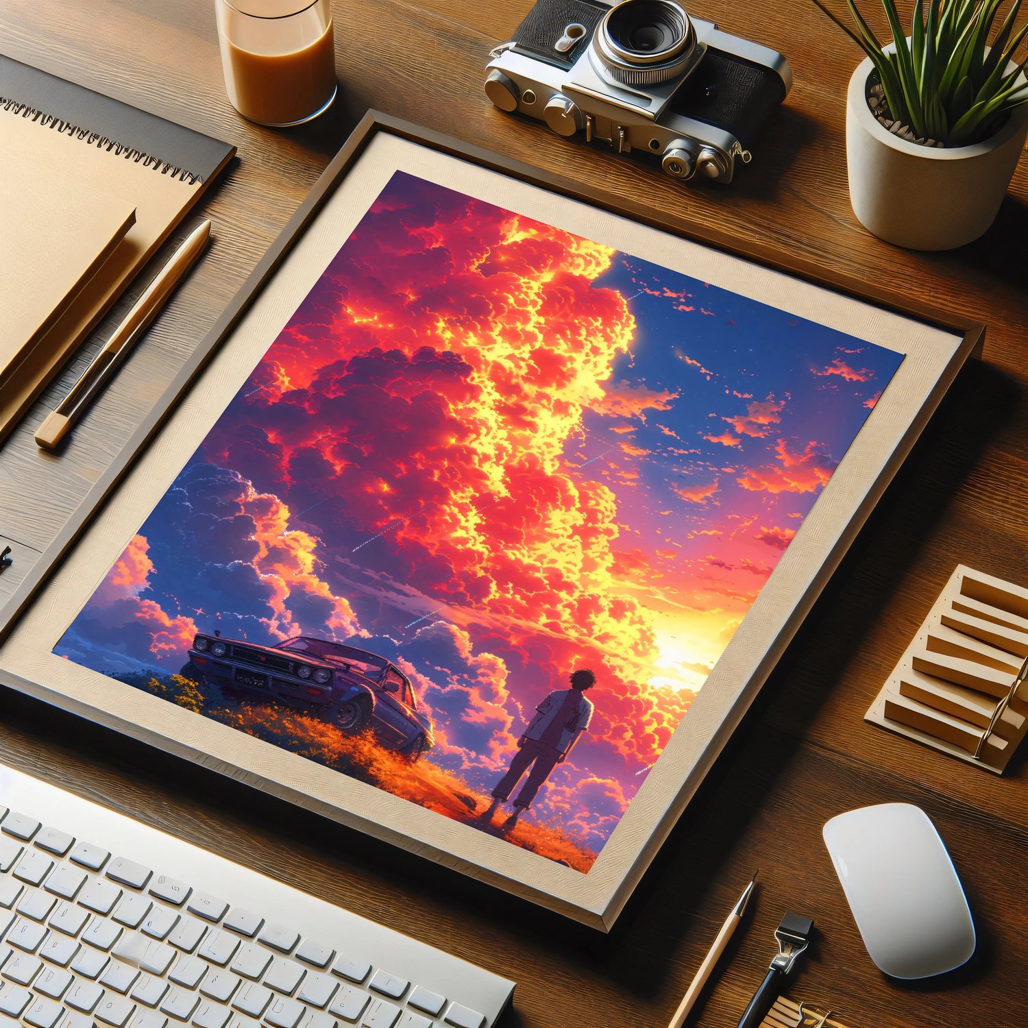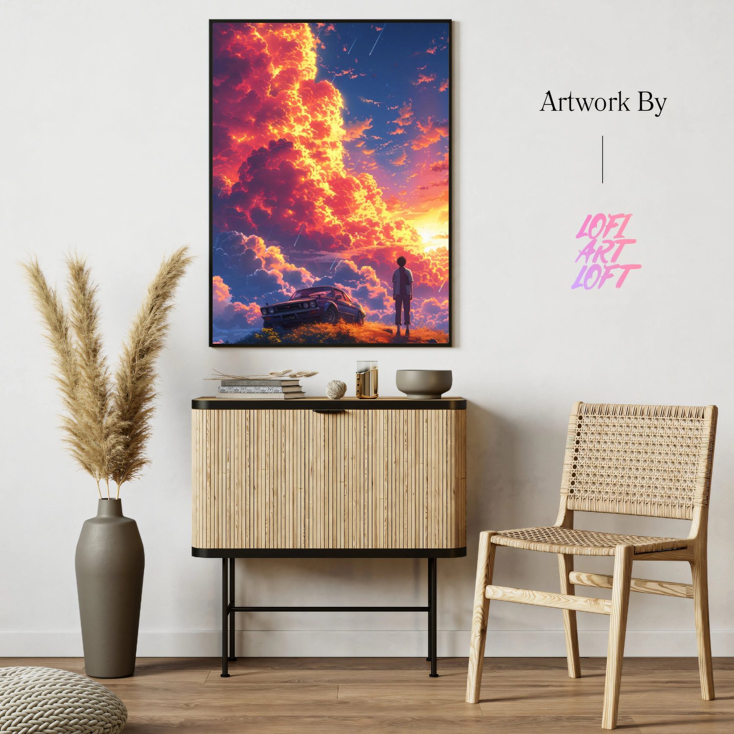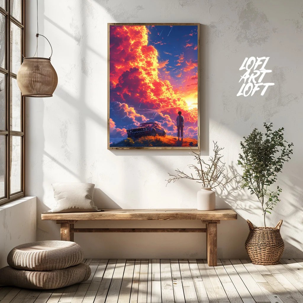 Dreamy Sunset Road Trip - UHQ Digital Lofi Anime Art Print | #11