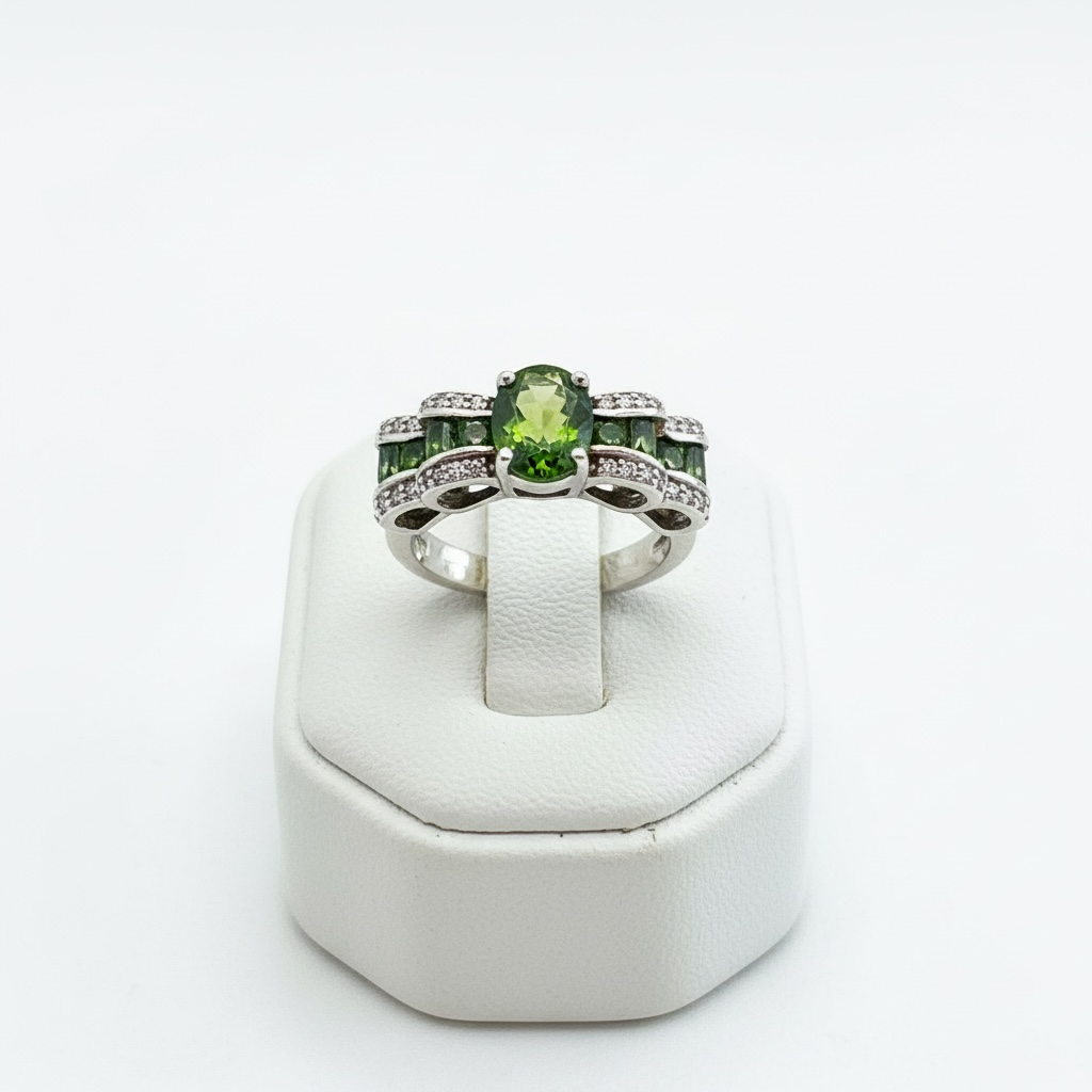 925 Sterling Silver Green Gemstone Ring