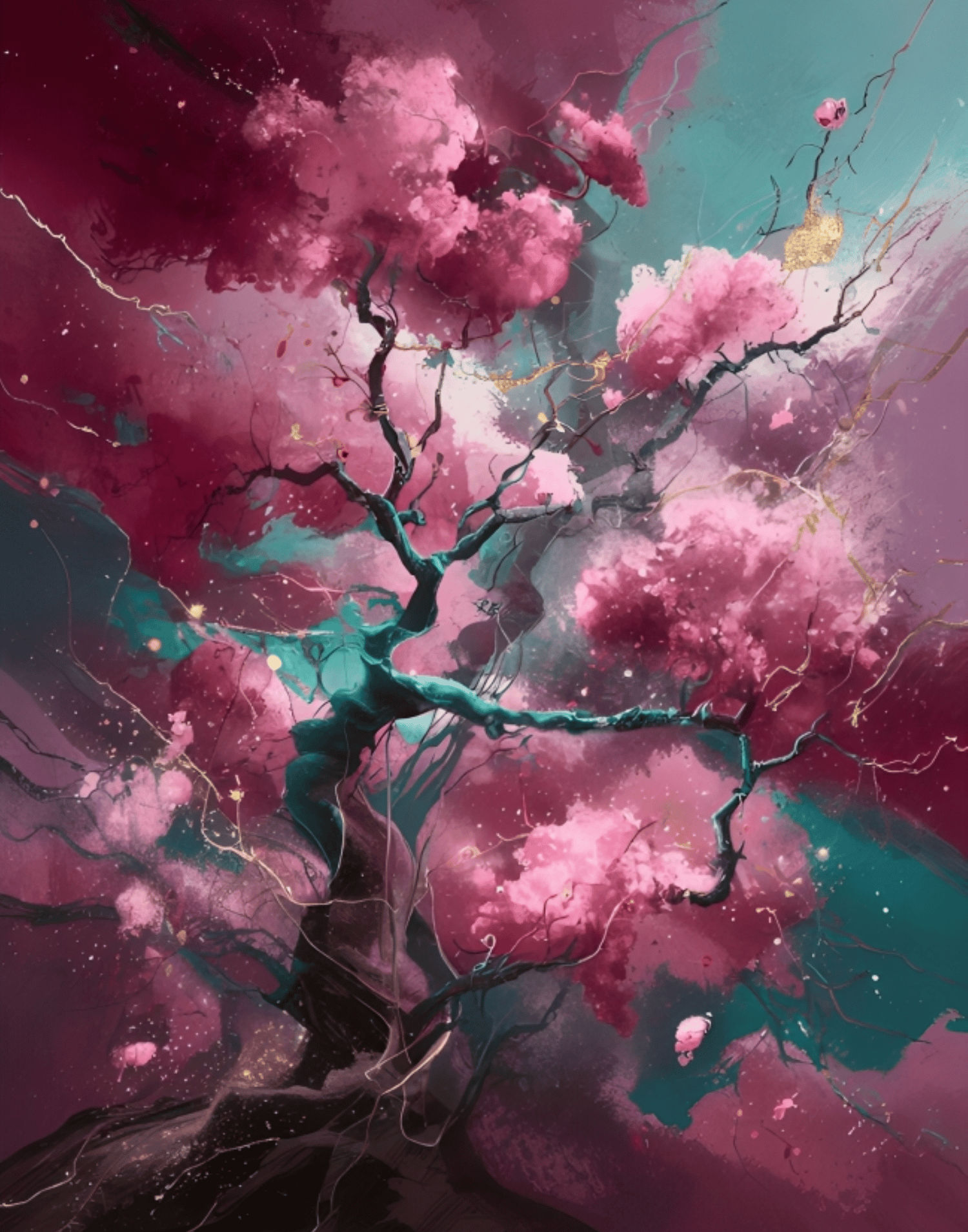 Japanese Cherry Blossom Painting, Top Single Tree Cherry Blossom Painting, Vintage Art, Top Art, Nostalgic Rural life, Nature, Cool Nature, Beautiful Nature, Natural Landscape, Wall Art, Digital Art.