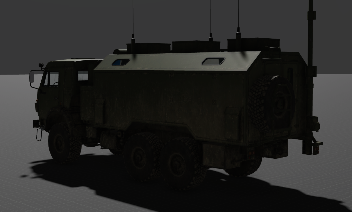 • Realistic physics for the 9S552 Mobile Command Post Kamaz