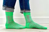 Green sample shown in Knit Picks Stroll Sock (affiliate)(fingering weight, 75% Superwash Merino Wool, 25% Nylon; 231 yards/50g): MC Key Lime Heather, 1 (1, 1, 2, 2)(2, 2, 3, 3) ball(s) AND CC Pucker, 1 ball.