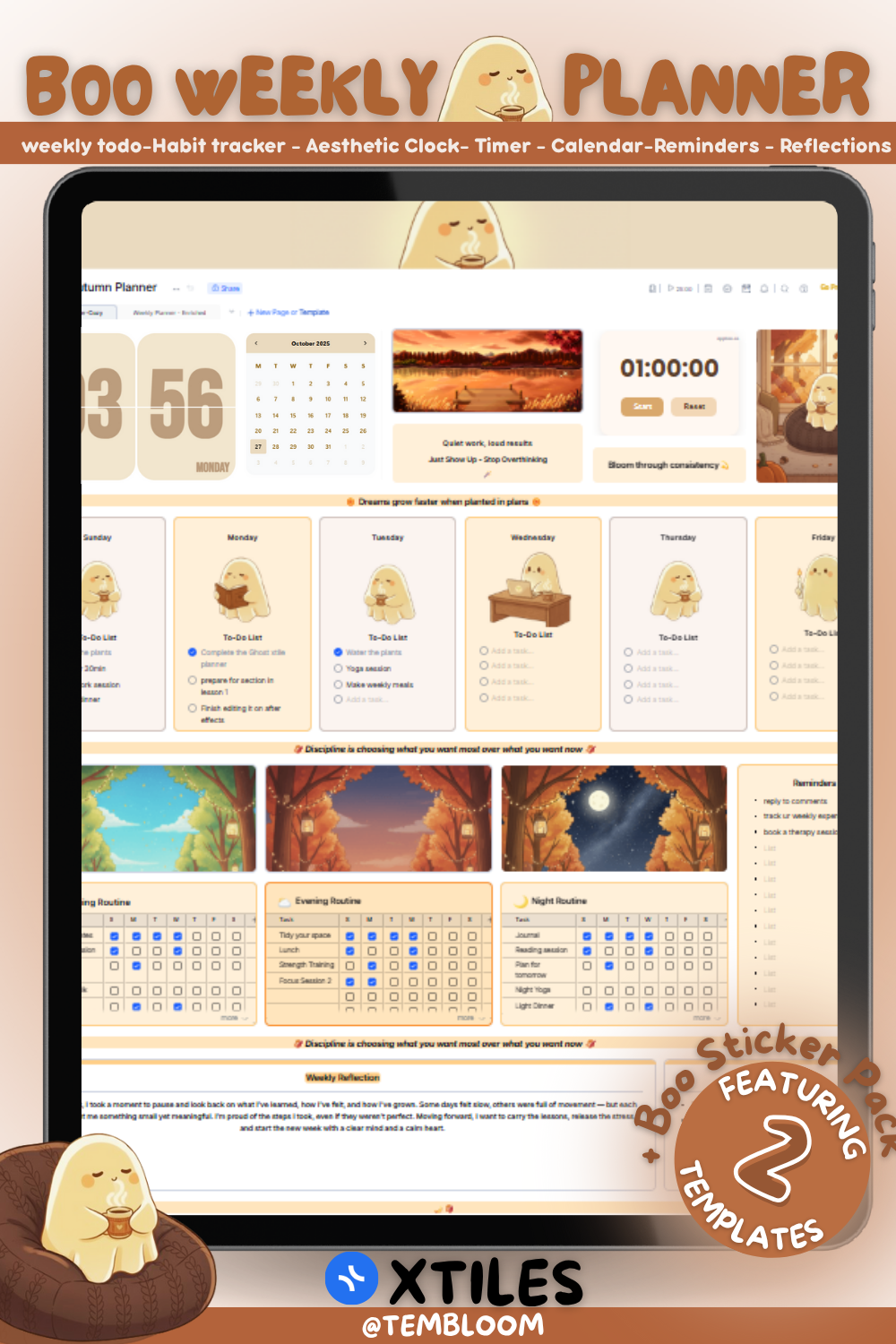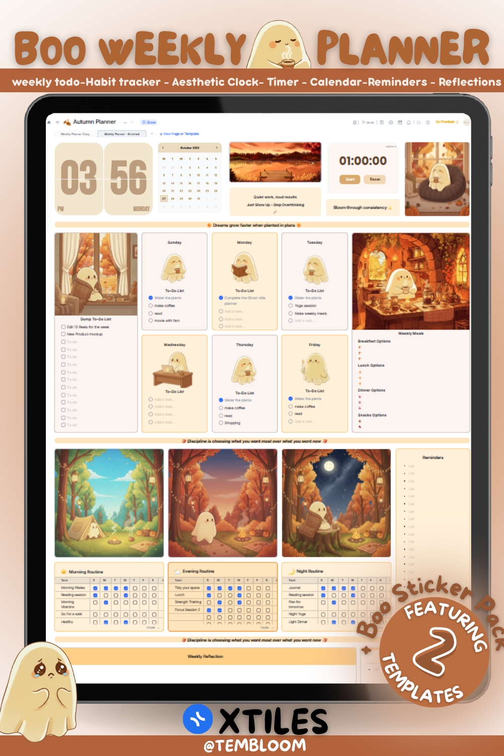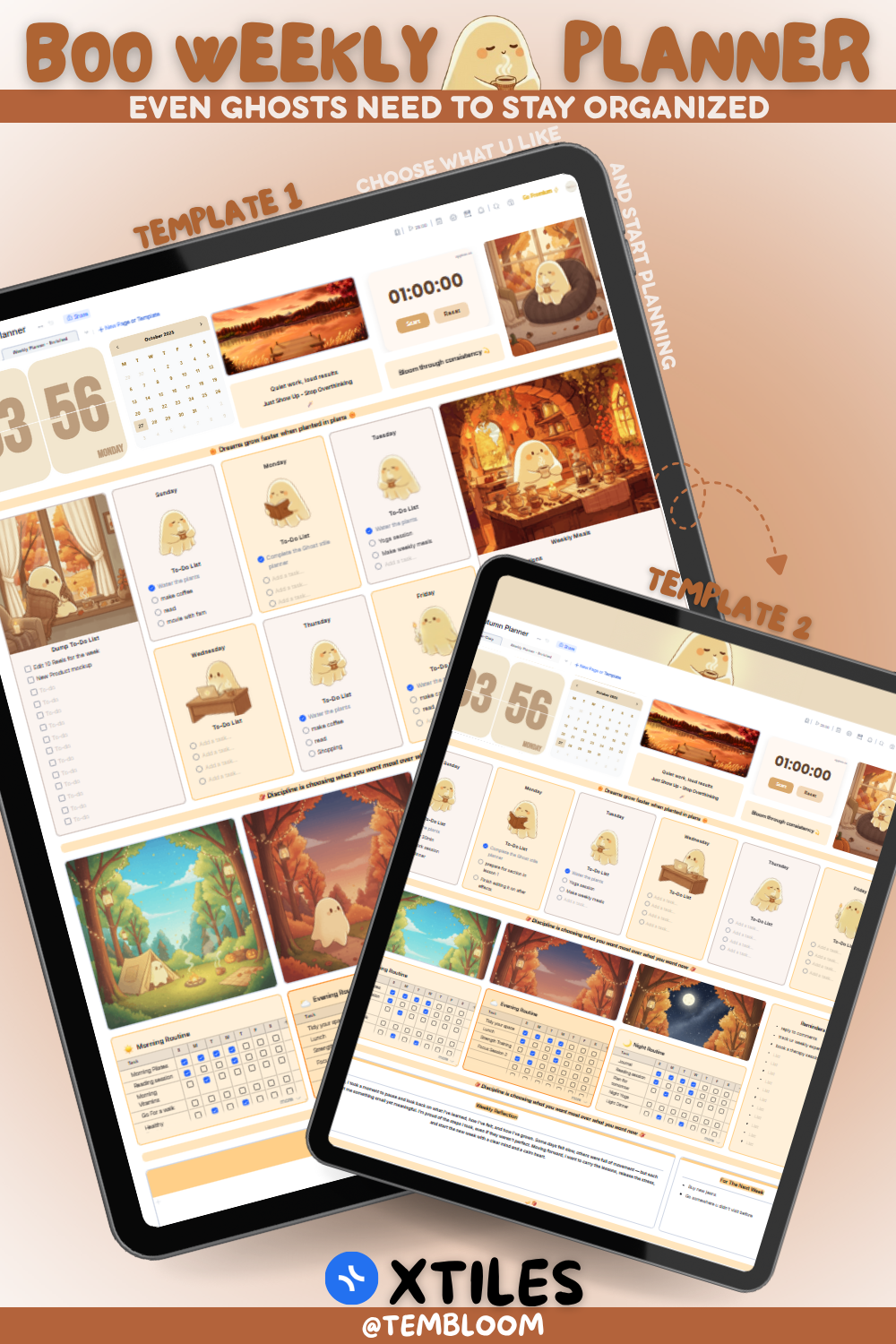 The Boo Weekly Planner features two unique Xtiles templates β