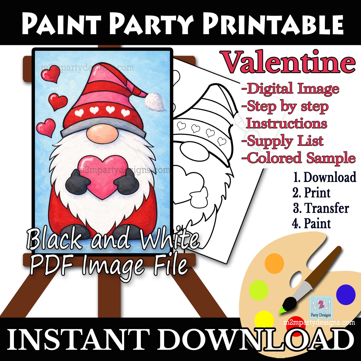 Valentine Gnome Paint Party | Cute Heart Gnome Art | Valentine’s Day Canvas | Beginner DIY Paint Night |Instant Download