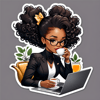 "Achieve Boss Babe status with this playful sticker featuring a multitasking black woman entrepreneur. Sip tea and coffee while hustling on your laptop. The perfect addition to your planner, notebook, or water bottle. Get double the caffeine boost and motivation to conquer your workday!"