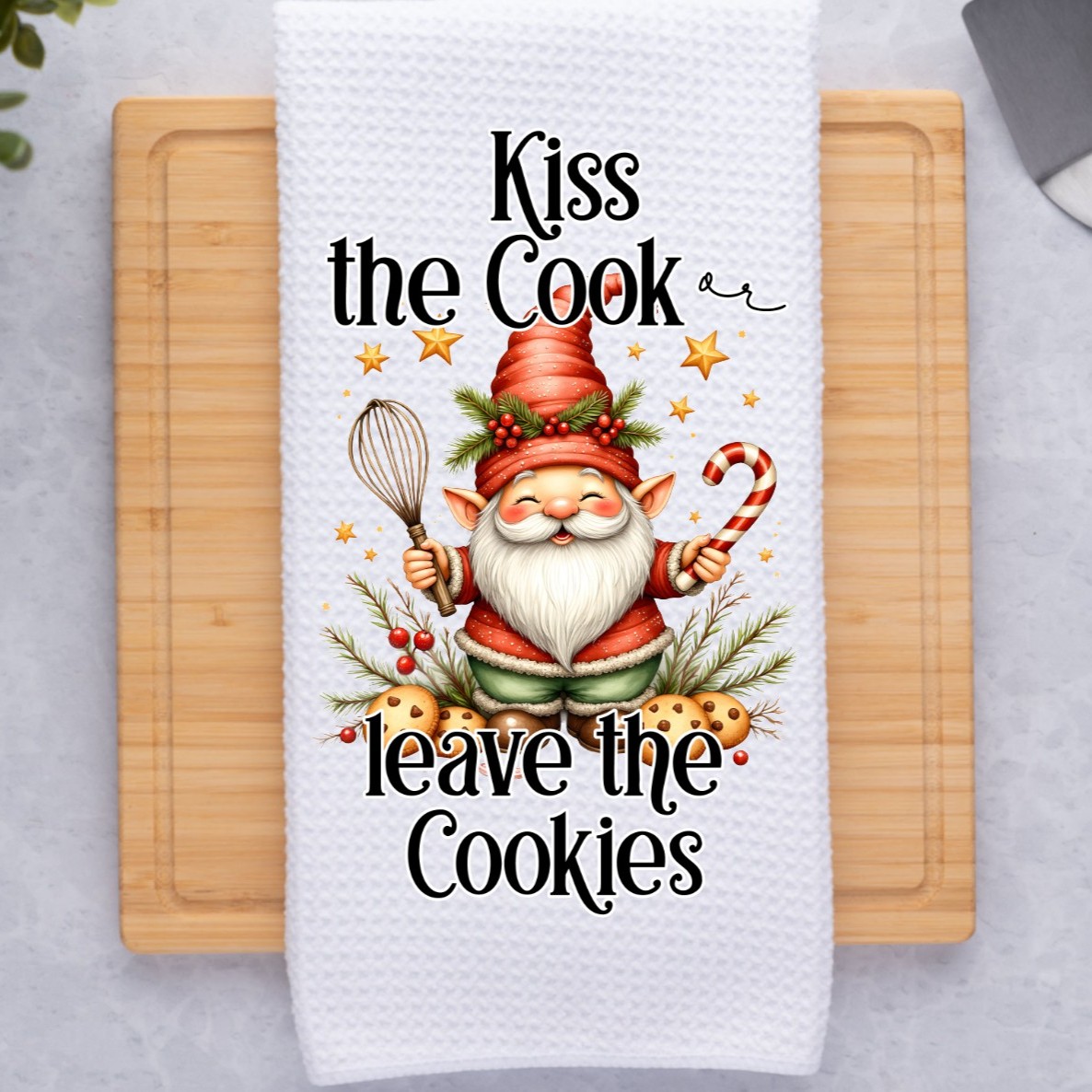 Christmas Kiss The Cook Or Leave The Cookies Funny Sarcastic Kitchen Dish Towel
