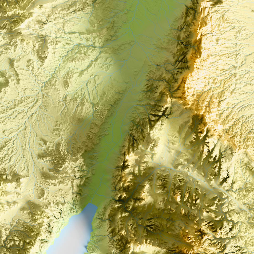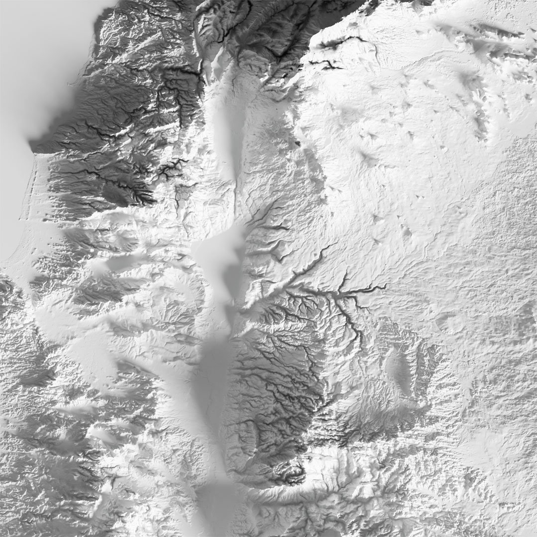Printable shaded relief map of the Holy Land and the vicinity in the Middle East.