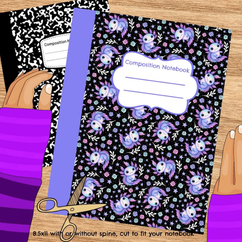 No more boring black and white composition books! This printable cover will make your notebook stand out! Size to fit any notebook up to 8.5x11- just print, cut and stick. Composition book measurements differ from brand to brand- you don't have to worry about sizing when you can cut it to fit perfectly.