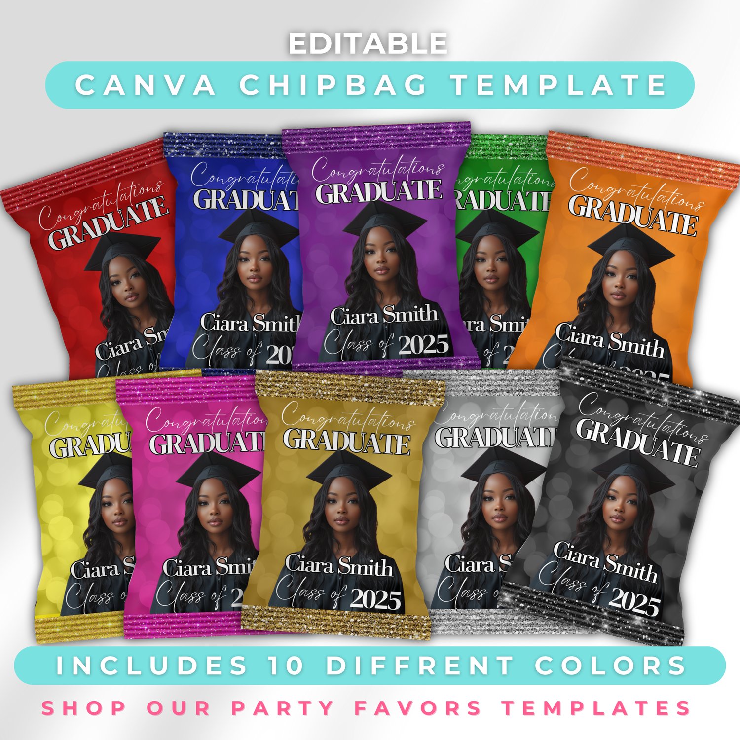 π Graduation Editable Chip Bag Bundle β 10 Colors | DIY Party Favor Design