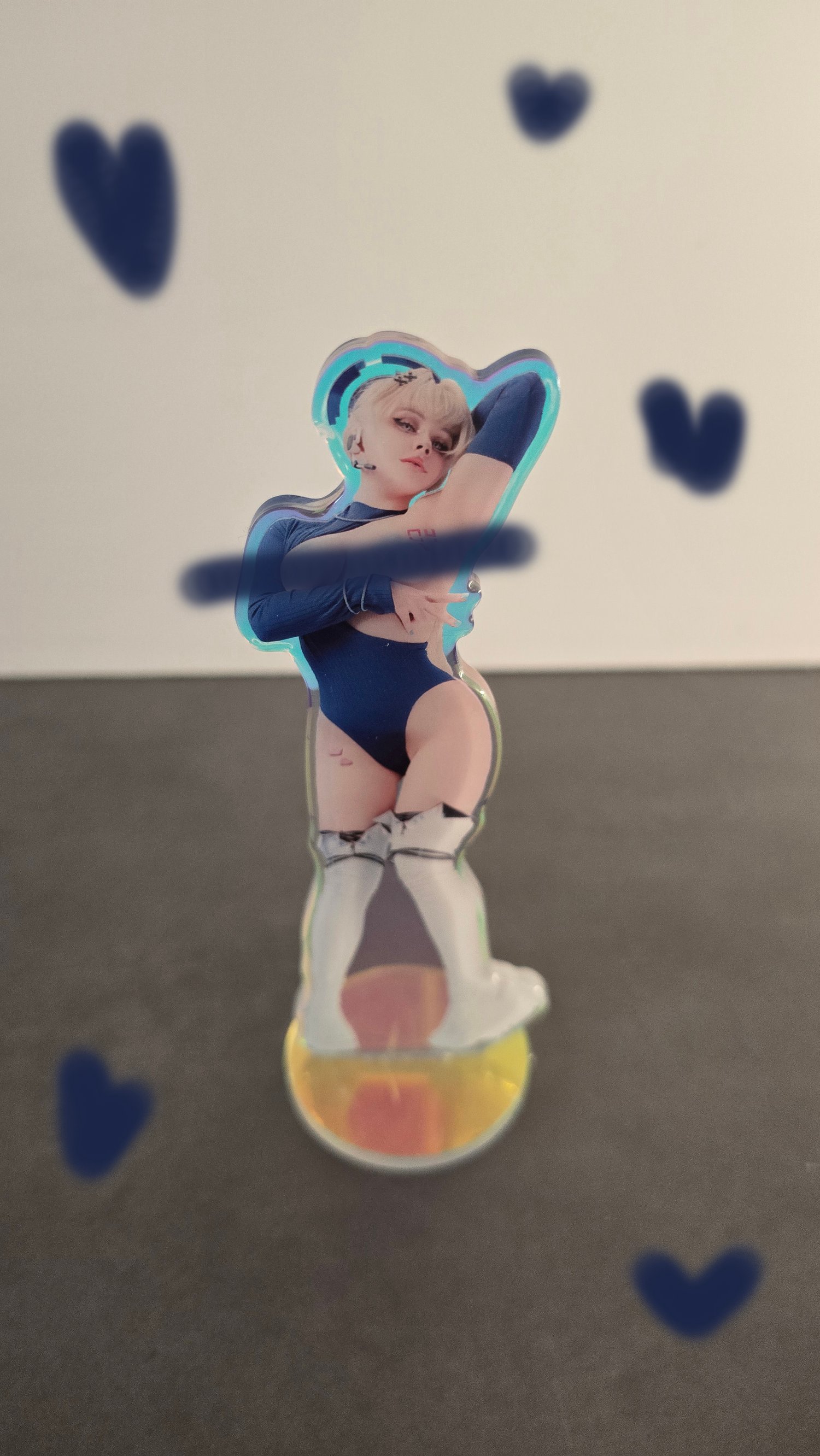The acrylic standees you came to know and love are here~ Each one is around 15 cm tall and varies in width. As you know I love holographic stuff, so I made sure these would be a little extra - and thus all of them are printed on holo plexi that shines beautifully in the light and the reflection/color changes.