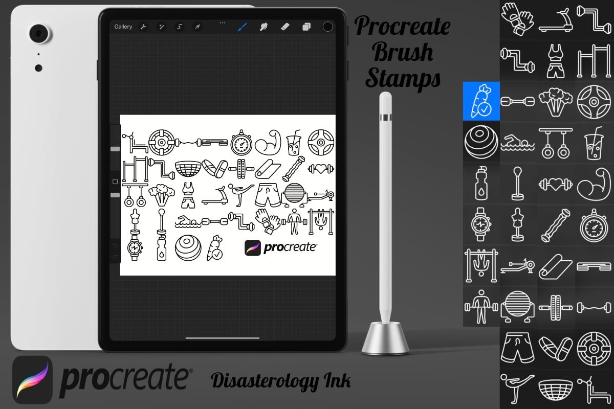 Procreate stamps save time when drawing, saving the effort of having to recreate the same thing for multiple designs and projects, save time on your design by purchasing these gym brush stamps so you can utilise that time on creating more beautiful art.
