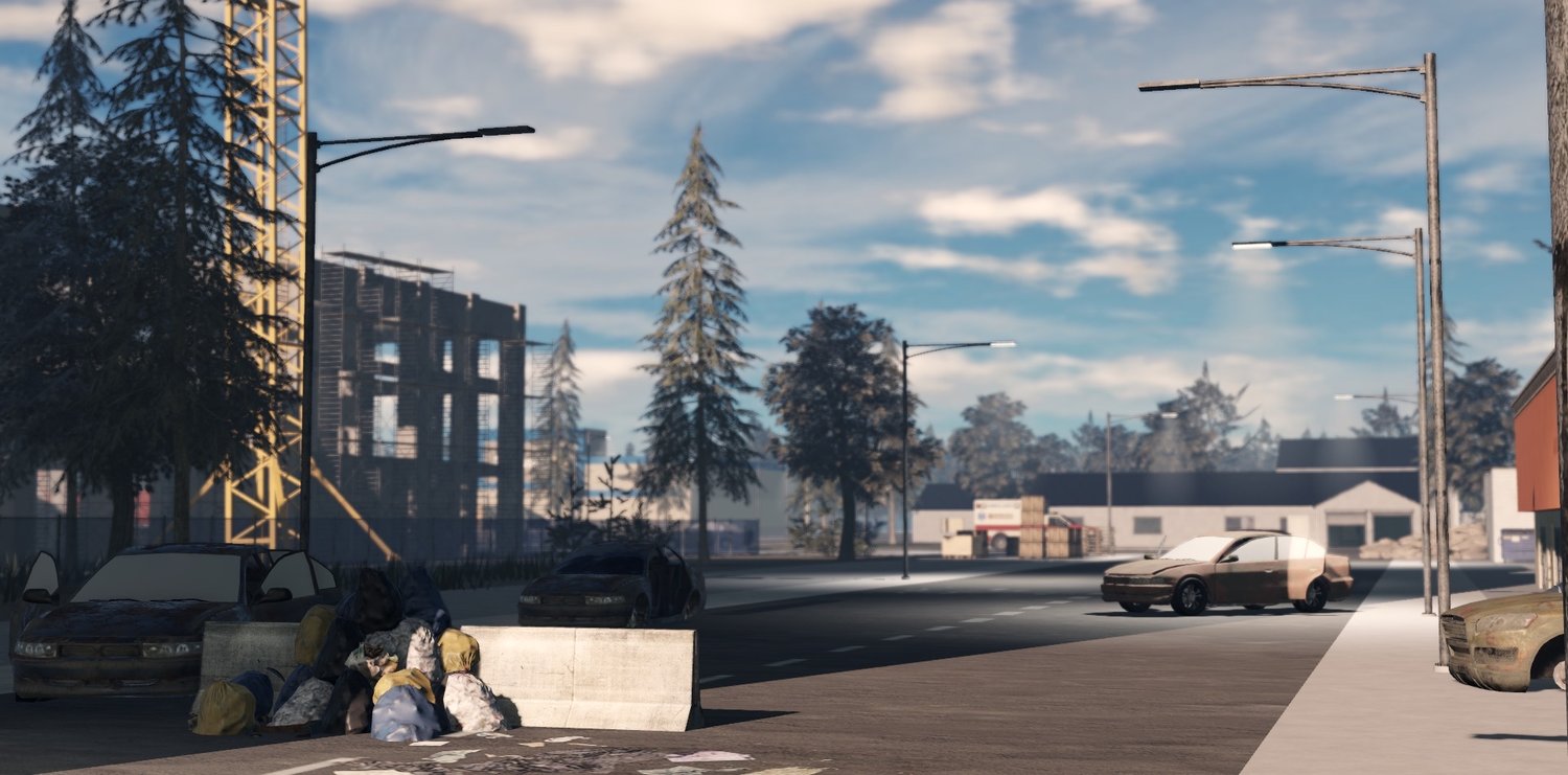 A fully developed border checkpoint area marks the edge of the state, complete with inspection lanes, defenses, and remnants of last-ditch evacuation efforts. This location works perfectly for roleplay, missions, or PvE encounters, and adds realism to the world’s collapse narrative.