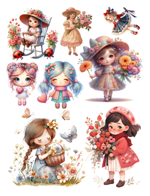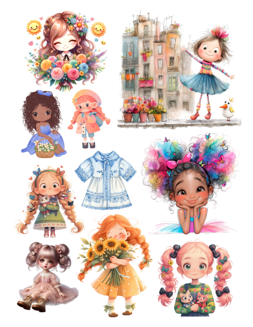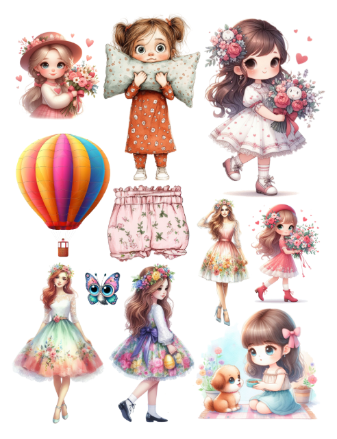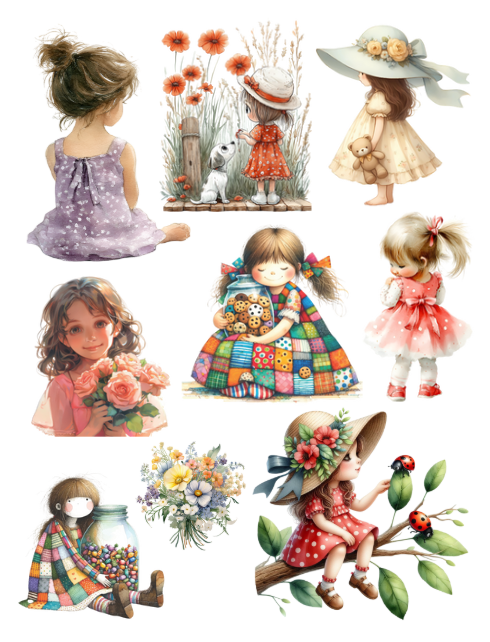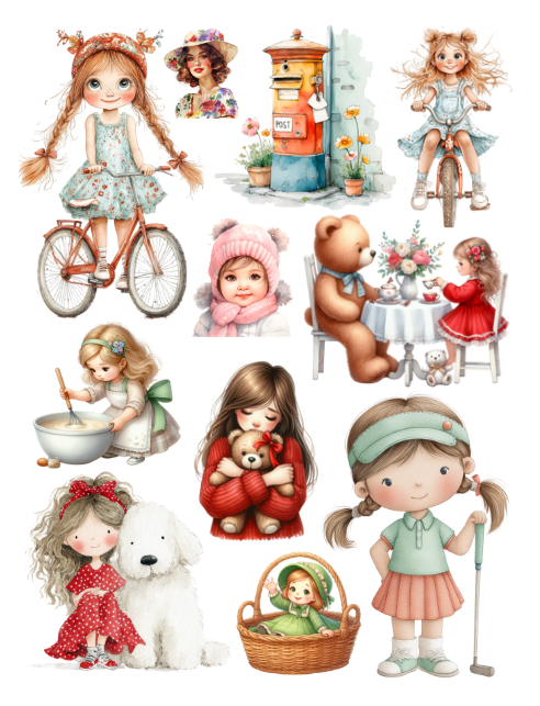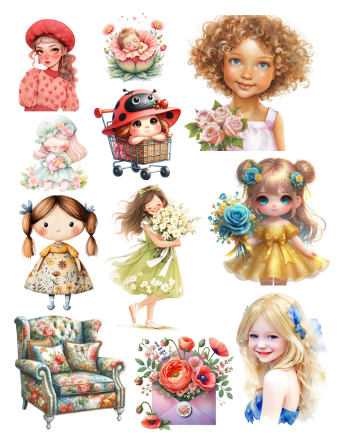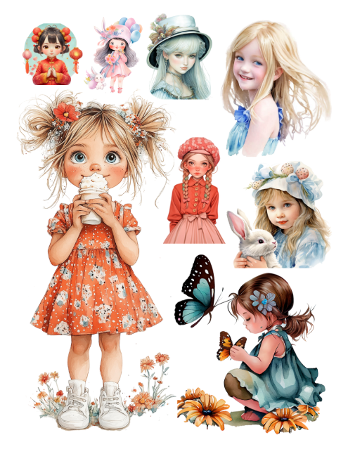 Cute Girls Ephemera to Cut and Collage PDF Printable