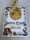 Santa Nice list medal and certificate. A5 certificate. Medal available in 4 colours (gold and silver are wooden and red and white are acrylic).