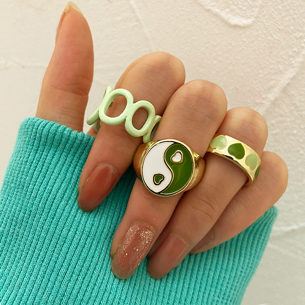 Inlaid Rhinestone Peach Heart Ring Creative Sweet Love Oil Dripping Ring 6-Piece Set.