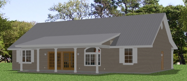 Roof: Metal Gable Roof (8:12 main pitch, 3:12 secondary)