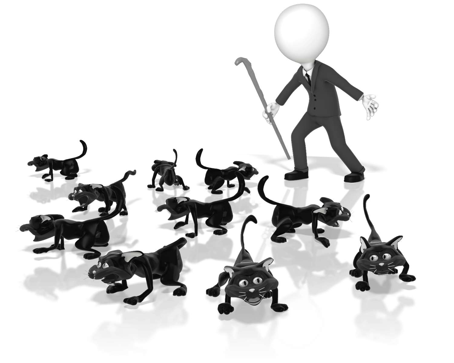 A business stick figure is shown trying to herd cats.
