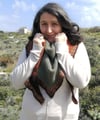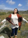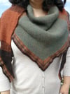 This shawl is an asymmetrical large cozy triangular shaped shawl, working from side to side, with a cast on of 3 stitches increasing slowly to its point and then decreasing down again to shape the shawl.