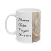 This glossy ceramic mug carries a quiet, heartfelt message across a soft vintage background. Gentle script repeats the phrase “Legacy of a Praying Mother,” layered over muted floral accents and a parchment-like texture. It feels like a warm, reflective pause in the morning — a small ritual object you reach for when you want to remember faith, family, and the prayers that shaped you. The comfortable C-handle and two size options make it easy to sip, carry, and keep on the desk or kitchen counter. It’s the kind of mug that becomes part of daily prayer time, a remembrance at family gatherings, or a calm companion during quiet reflection.