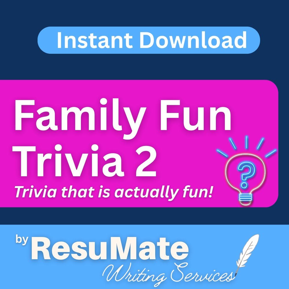 Family Fun Trivia Pack 2 - Printable. Easy, Instant Download.