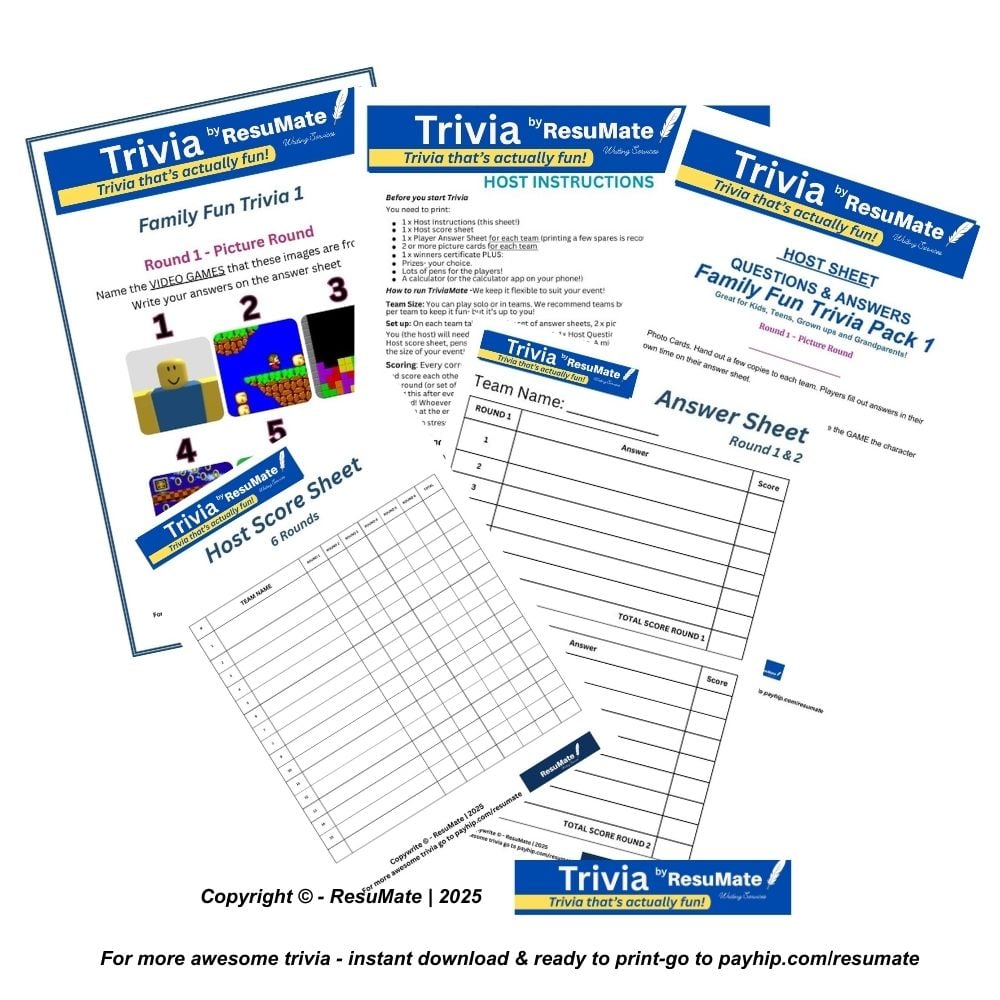 ✅ Includes Answer Sheets, Host Instructions, Score Sheet & More
