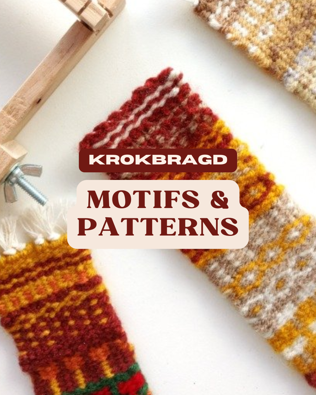 Krokbragd weaving pattern + guide - Bookmark woven on a frame loom - Abstract motifs
