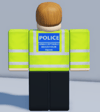 A yellow hi vis jacket with POLICE UNACCEPTABLE BEHAVIOUR TEAM markings on the front and back.