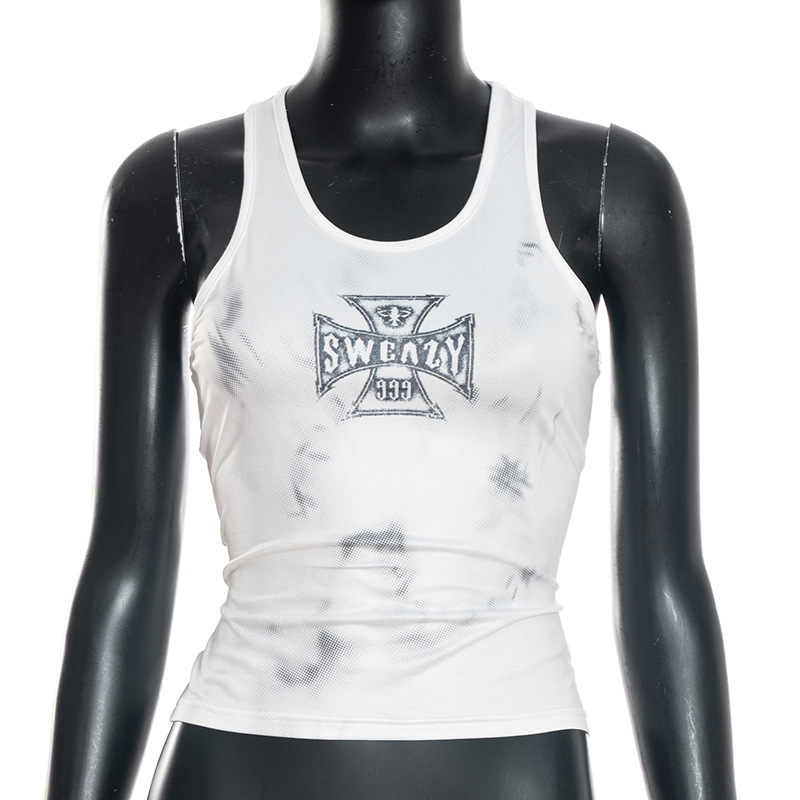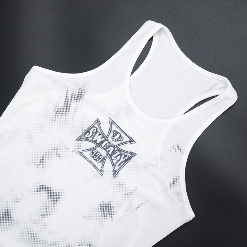 Designer subculture gothic cross prints white vest