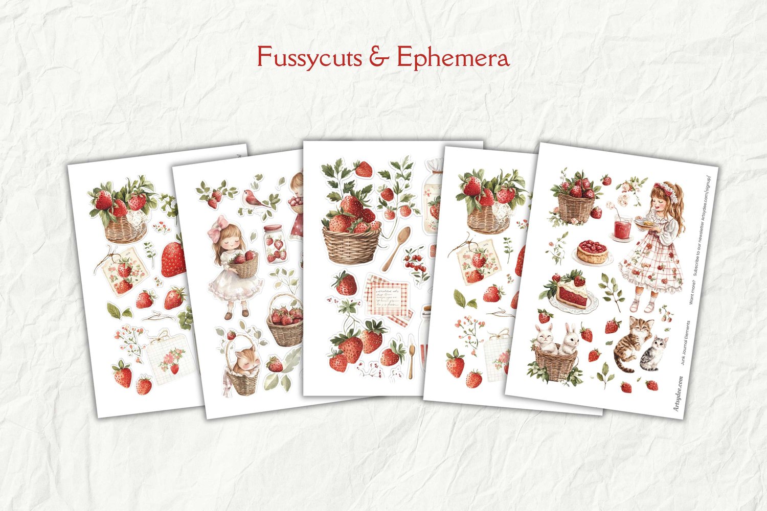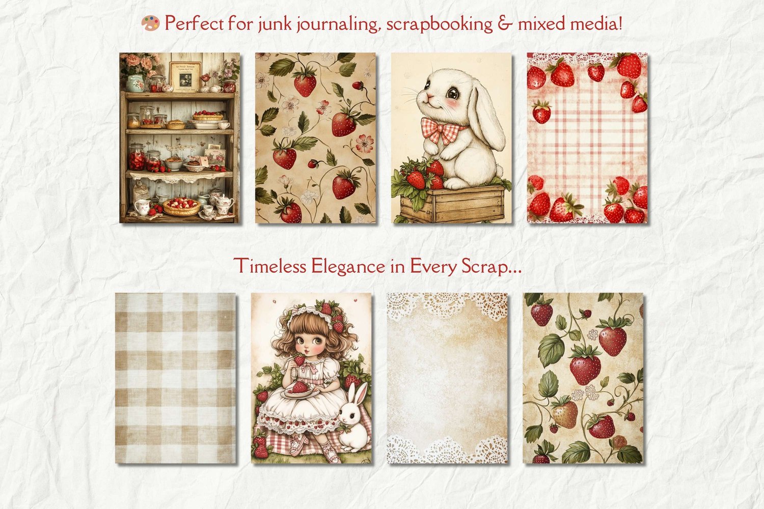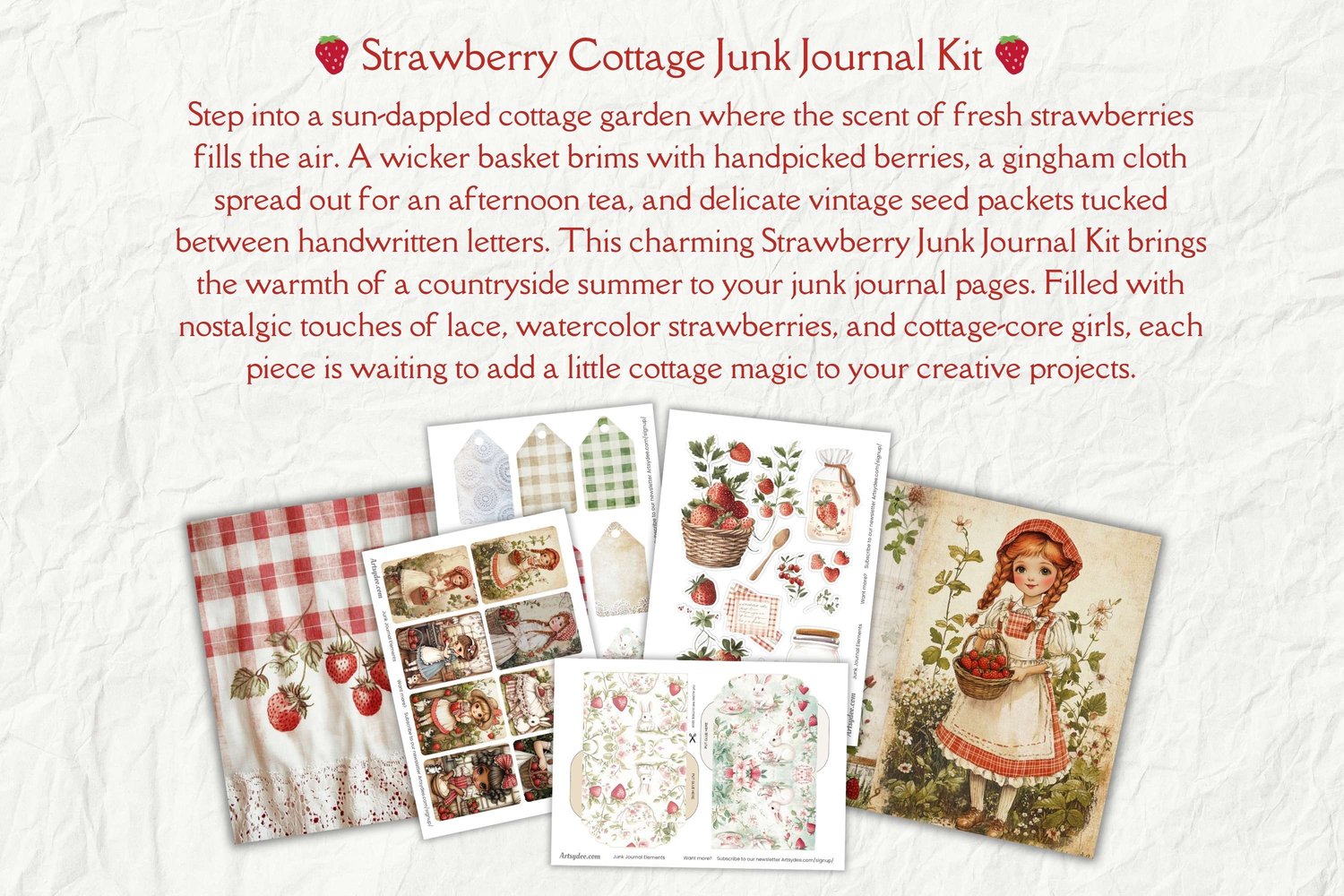 Strawberry Junk Journal Kit, Cottage Girls, Strawberry Junk Journal, Cottagecore Junk Journal, Art Journal Paper, Card Making, Scrapbooking
