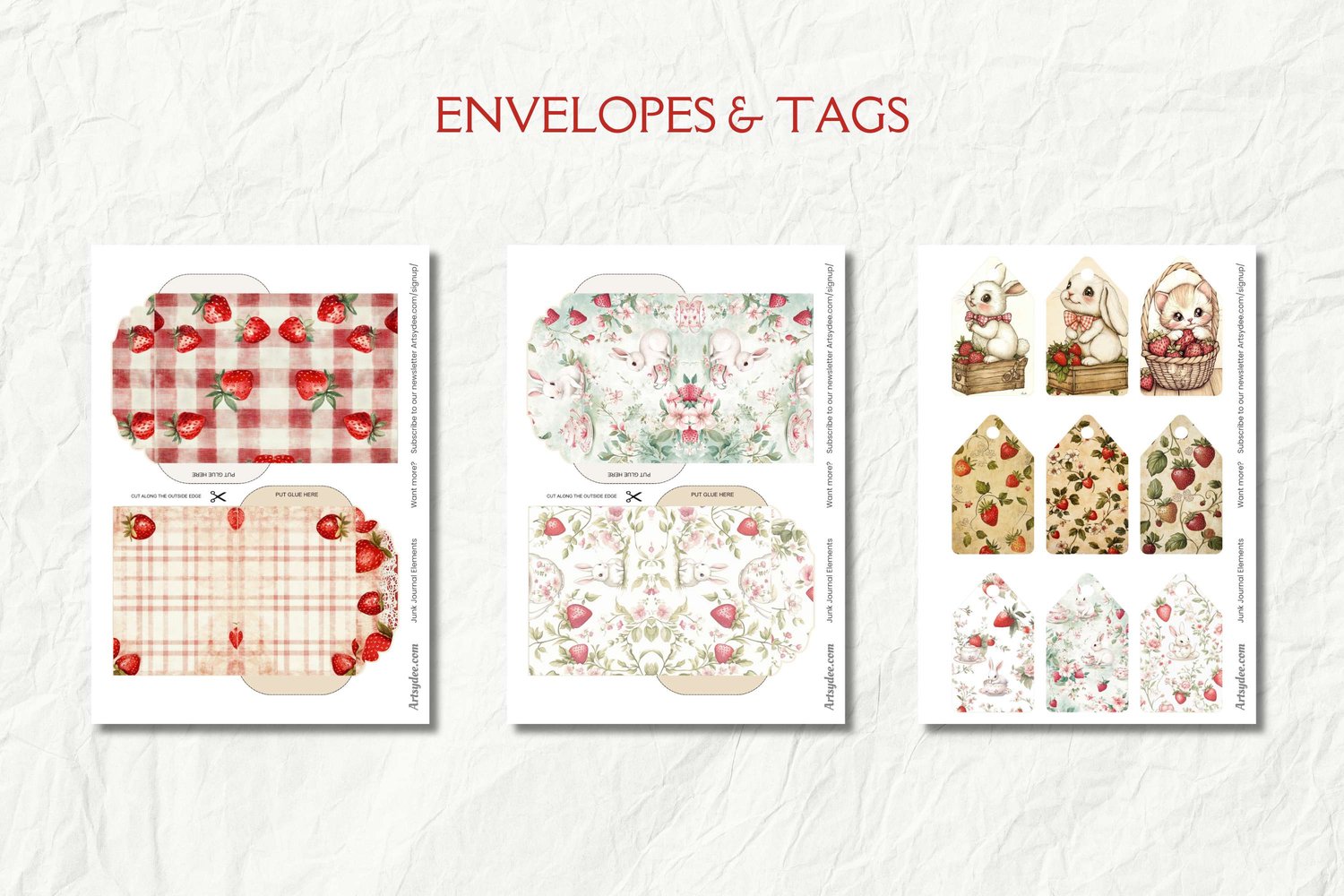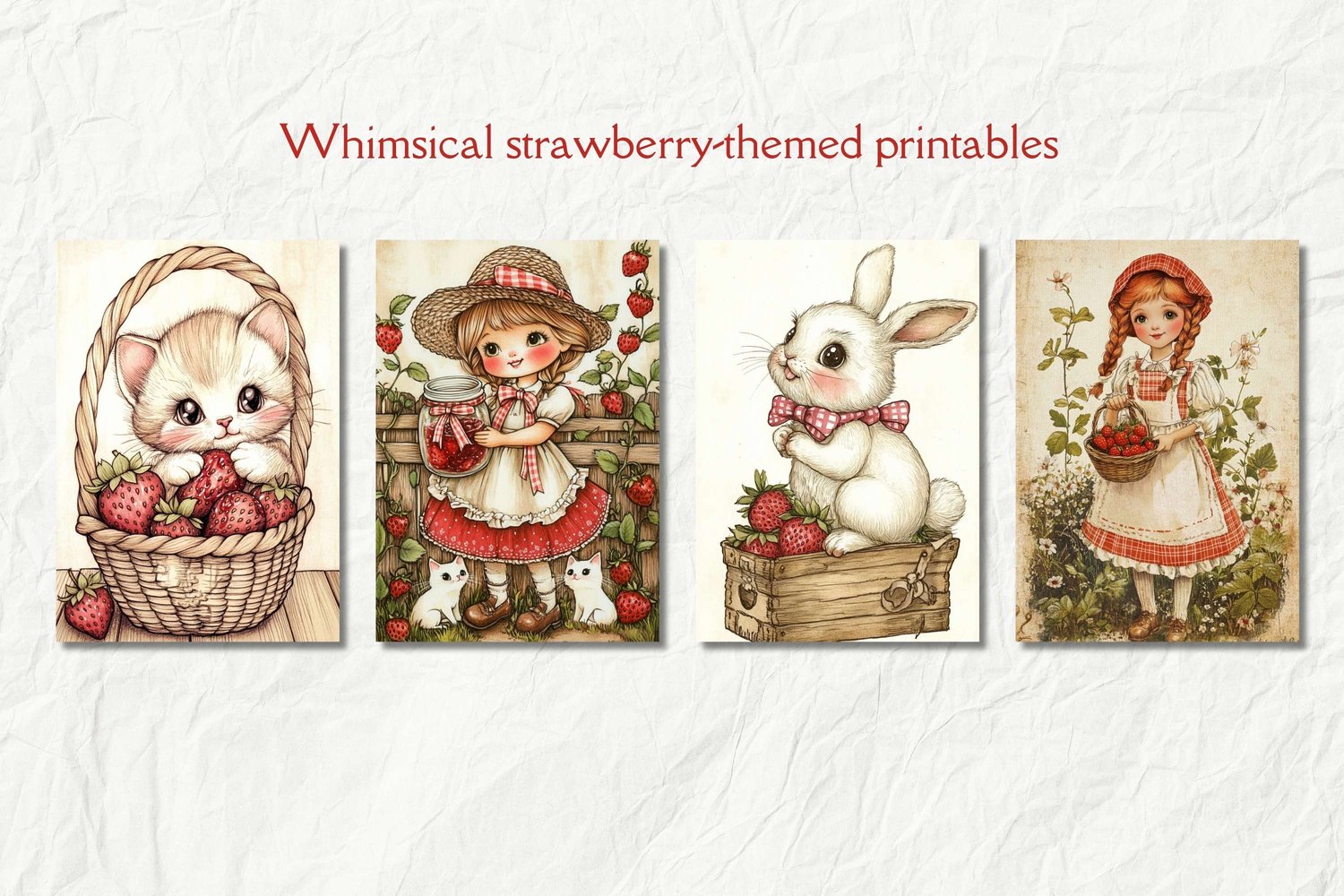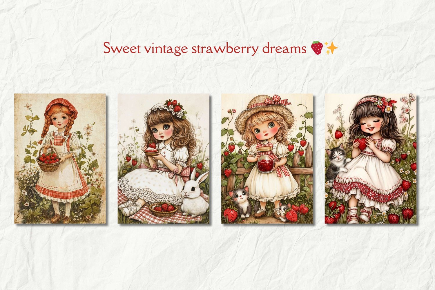 Strawberry Junk Journal Kit, Cottage Girls, Strawberry Junk Journal, Cottagecore Junk Journal, Art Journal Paper, Card Making, Scrapbooking