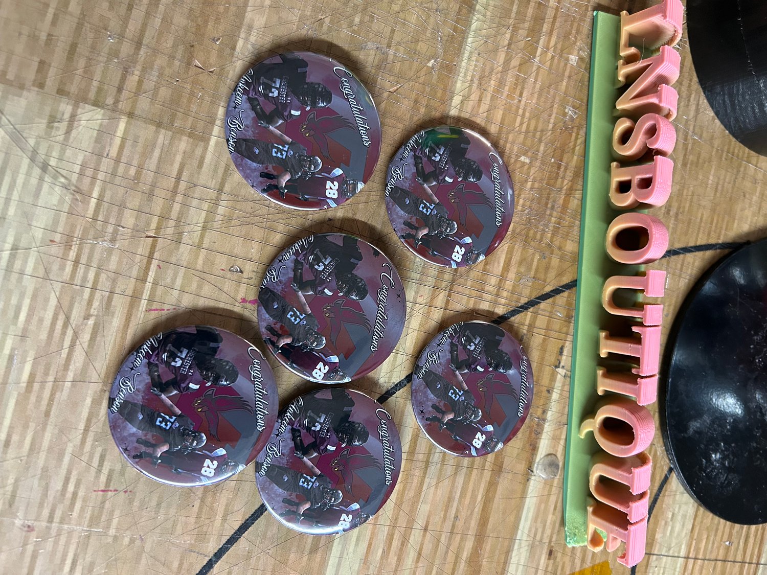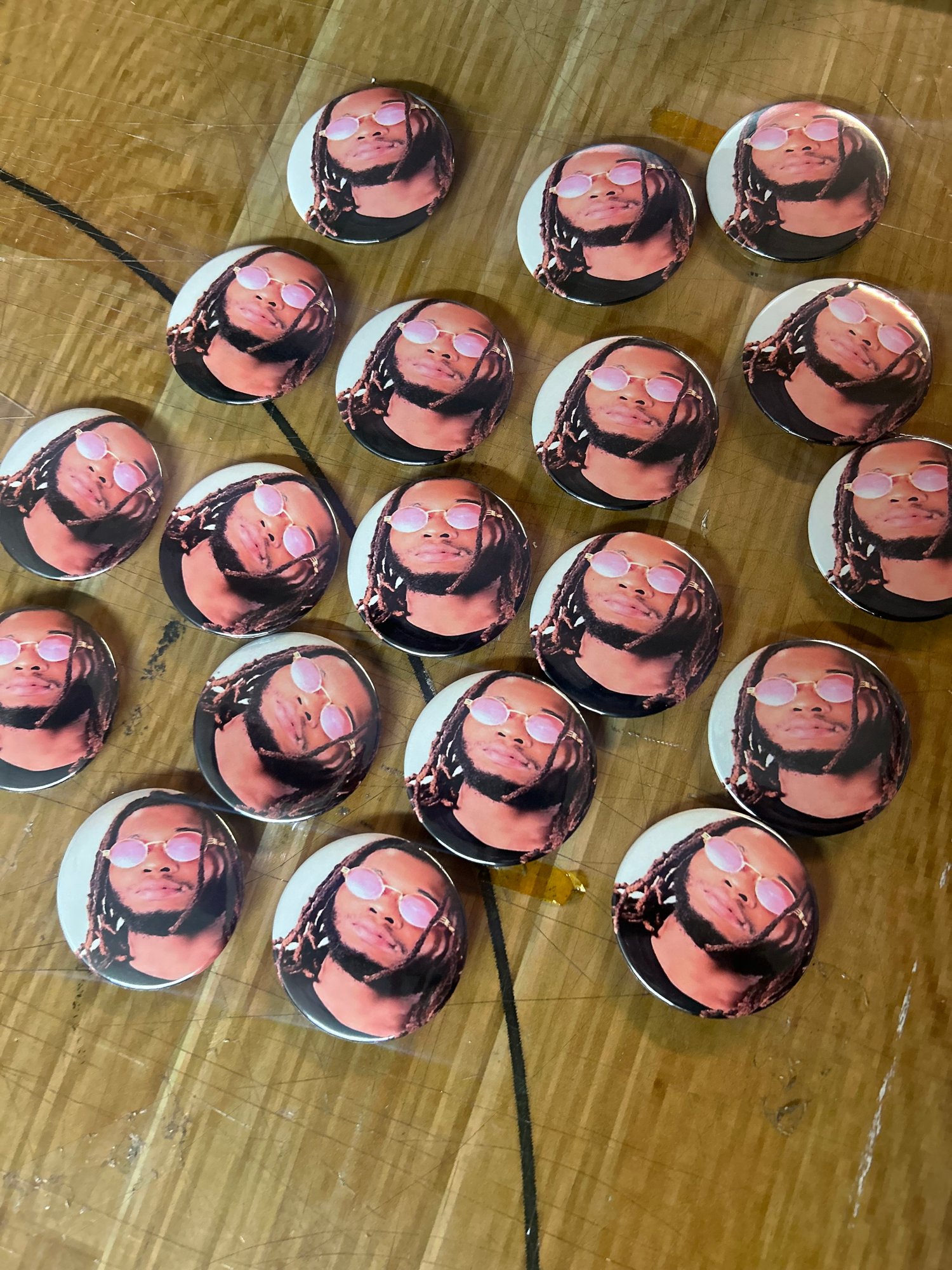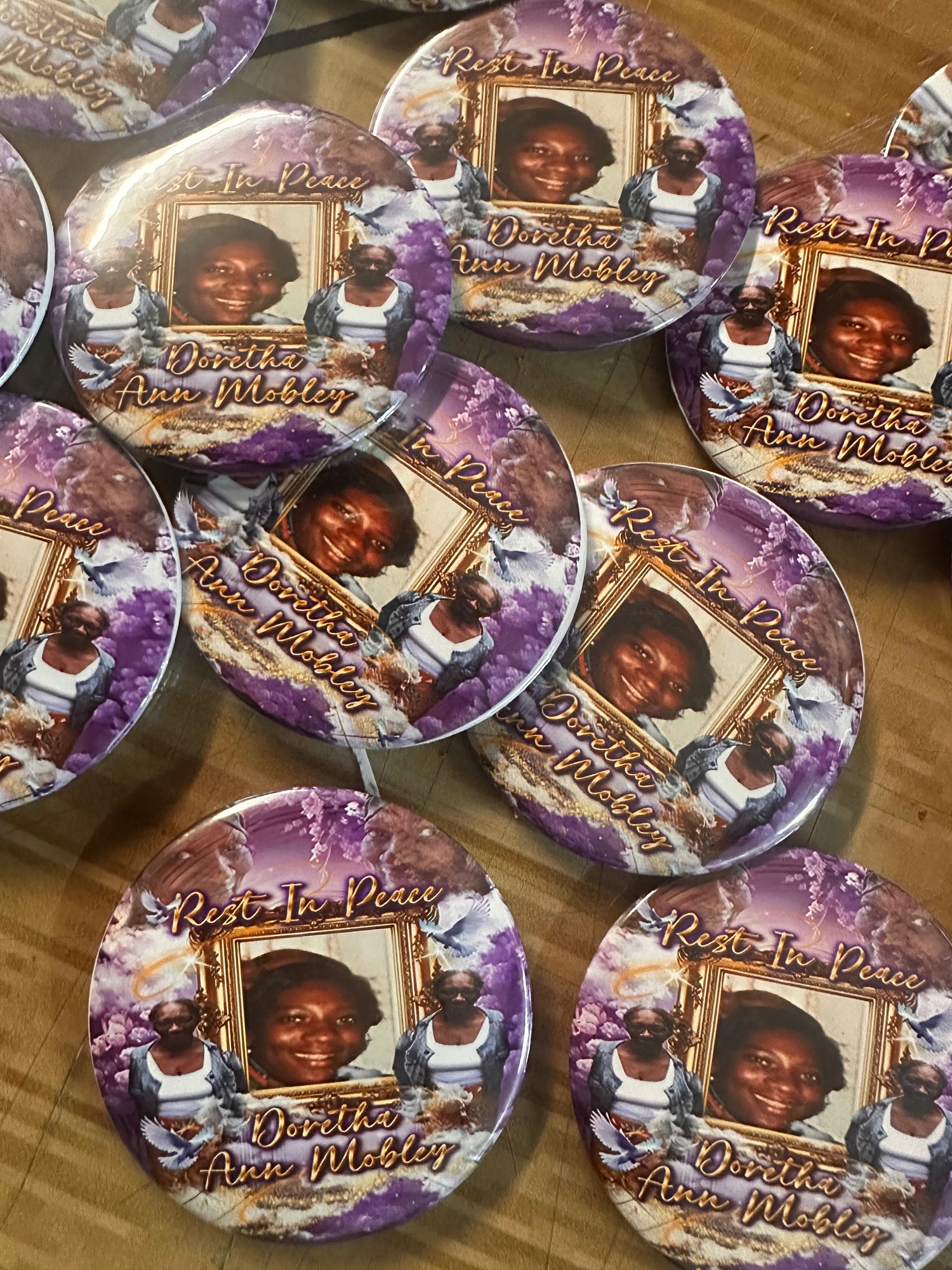 Get a dozen custom buttons made for any occasion! Simply send your photos, color preferences, and any additional details.