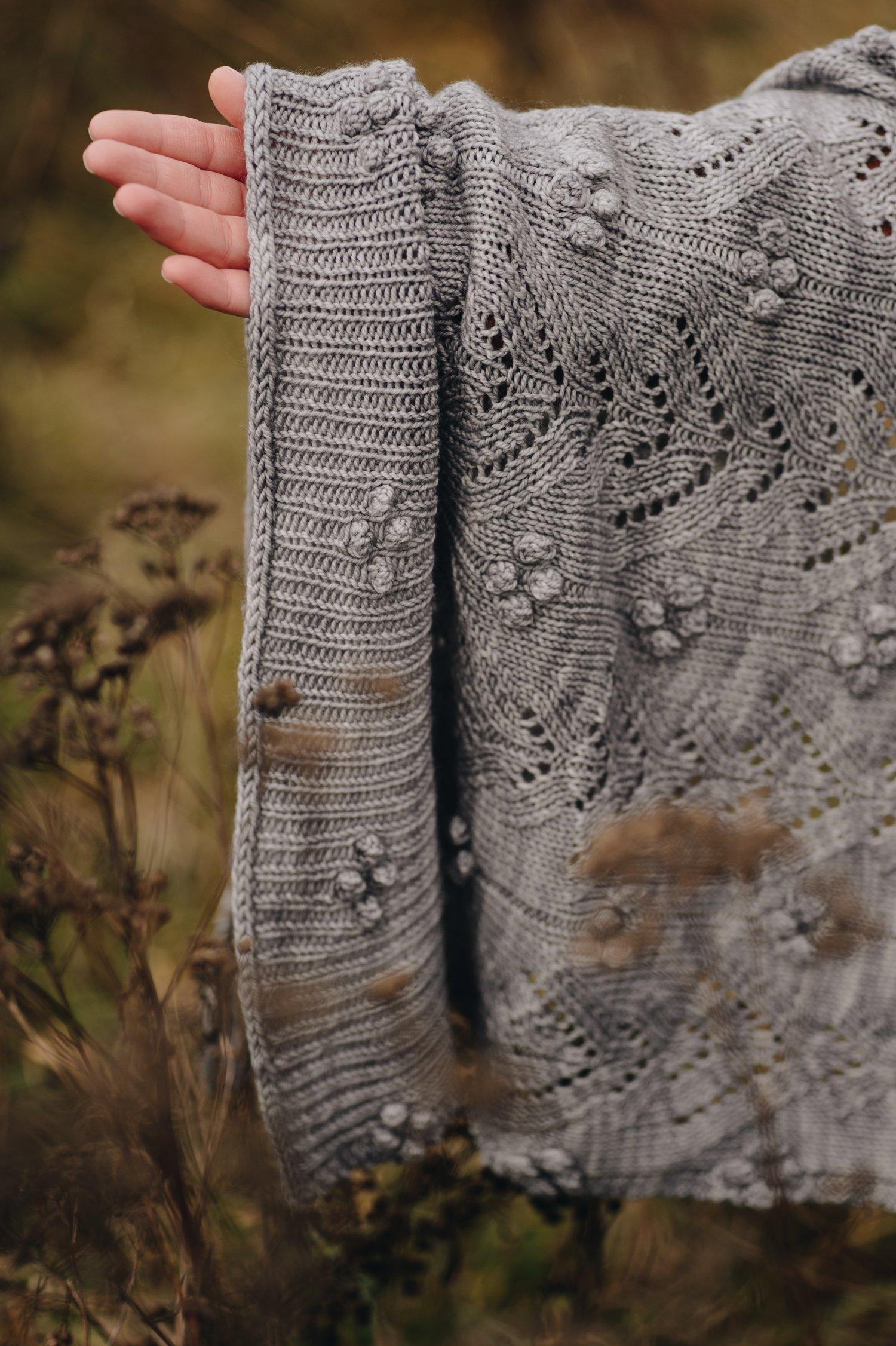 This simple but stylish shawl is fun and easy, both to knit and to wear. Most of the body is worked in bobbled pattern and finished with a delicate combination of bobbles and lace.