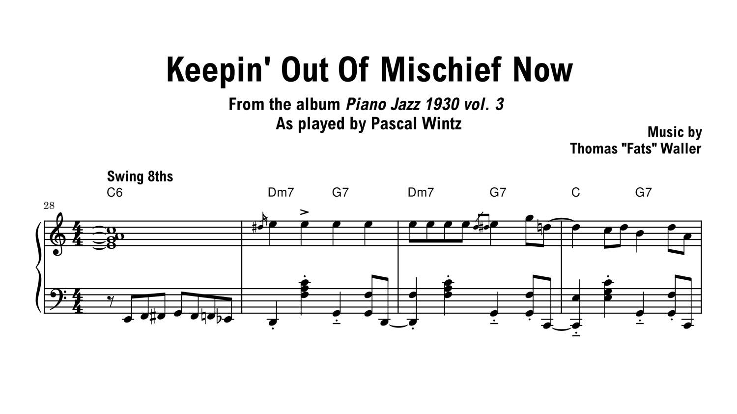 Sheet music of Keepin' Out Of Mischief Now, as played by Pascal Wintz.
