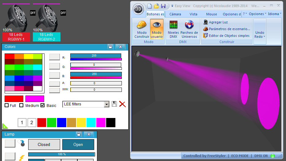 Esta Librería SSL2 está optimizada para trabajar con Magic 3d Easy View. Es decir para ver una representación 3D de las secuencias que estemos realizando con Freestyler, QLC+ o cualquier otro soft que se conecte con Magic 3d.