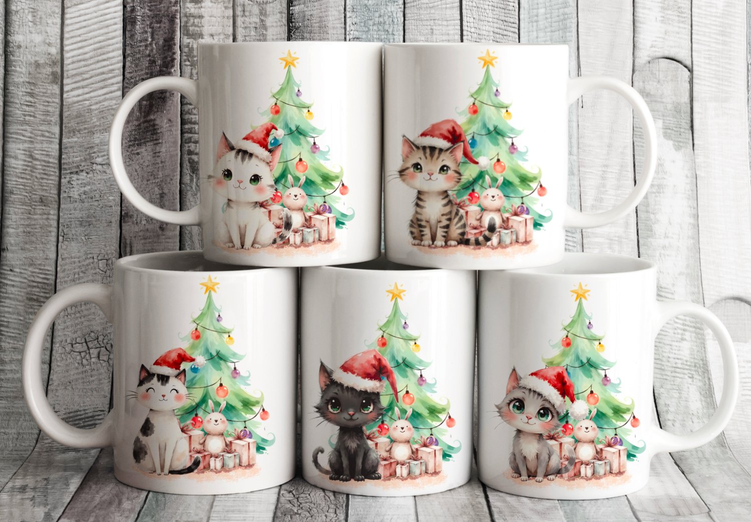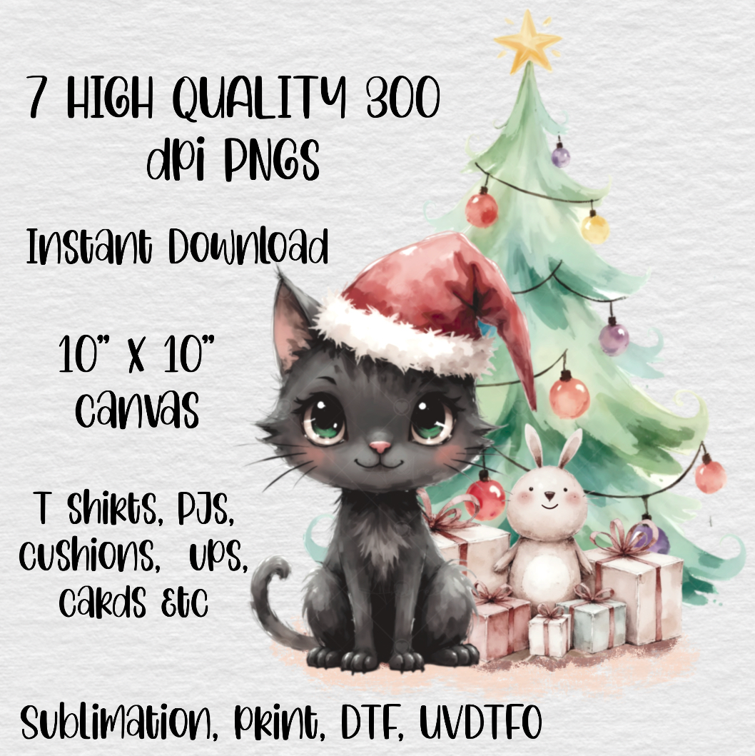 Cute naughty cats with Santa. 6 PNGs. digital download. Sublimation, print, DTF, UVDTF. 10x10” high quality, suitable for clothing, gift sacks, but can be resized for mugs and baubles etc.
