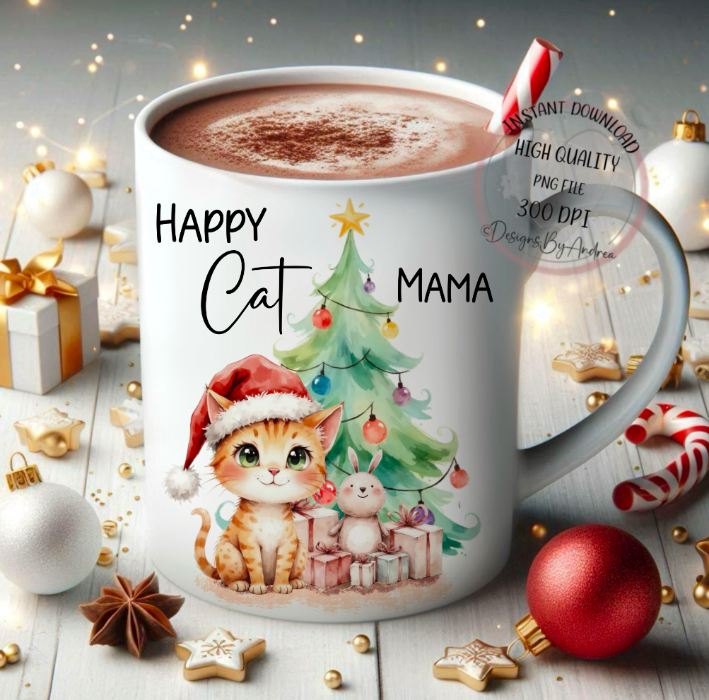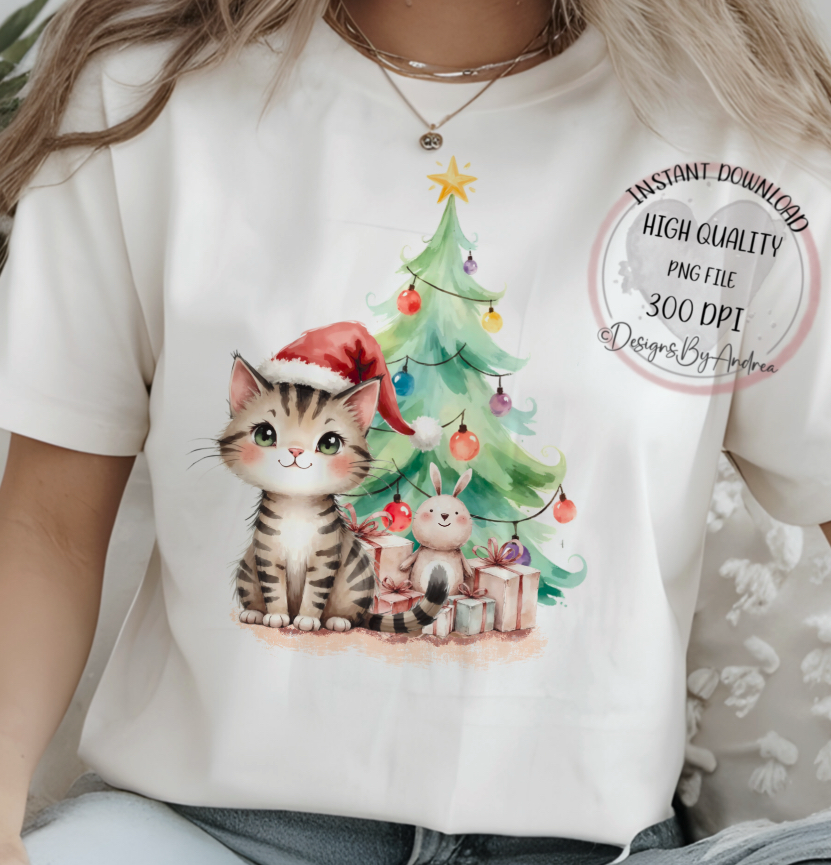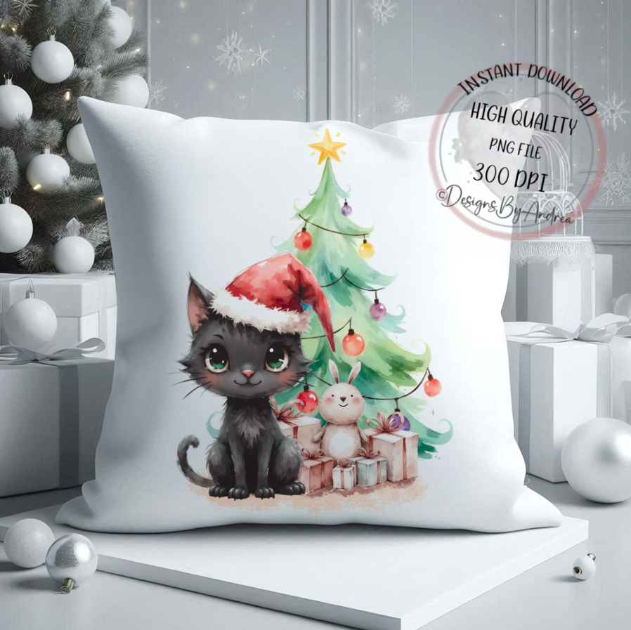 Cute naughty cats with Santa. 6 PNGs. digital download. Sublimation, print, DTF, UVDTF. 10x10”