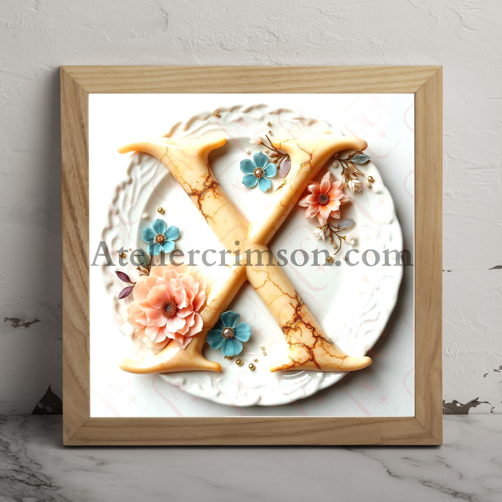 The letter X flowers and procelaine .Download Now this high quality AI-generated image, perfect for adding a touch of tranquility and creativity to any space.