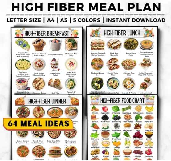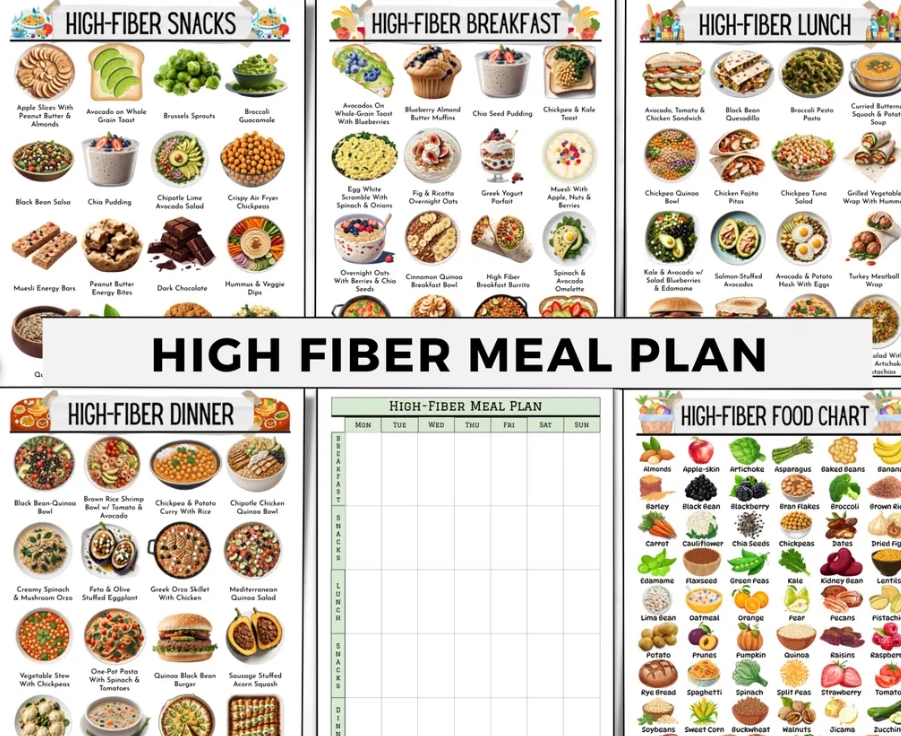 High Fiber Foods List, High Fiber Foods Chart, High Fiber Meals, Fiber Rich Foods, High Fiber Foods Poster, High Fiber Meals, Fiber FoodsCOPY OF Anti-Inflammatory Meal Plan, Anti Inflammatory Food Chart, Gut Health Guide, Anti-Inflammatory Diet Food Guide