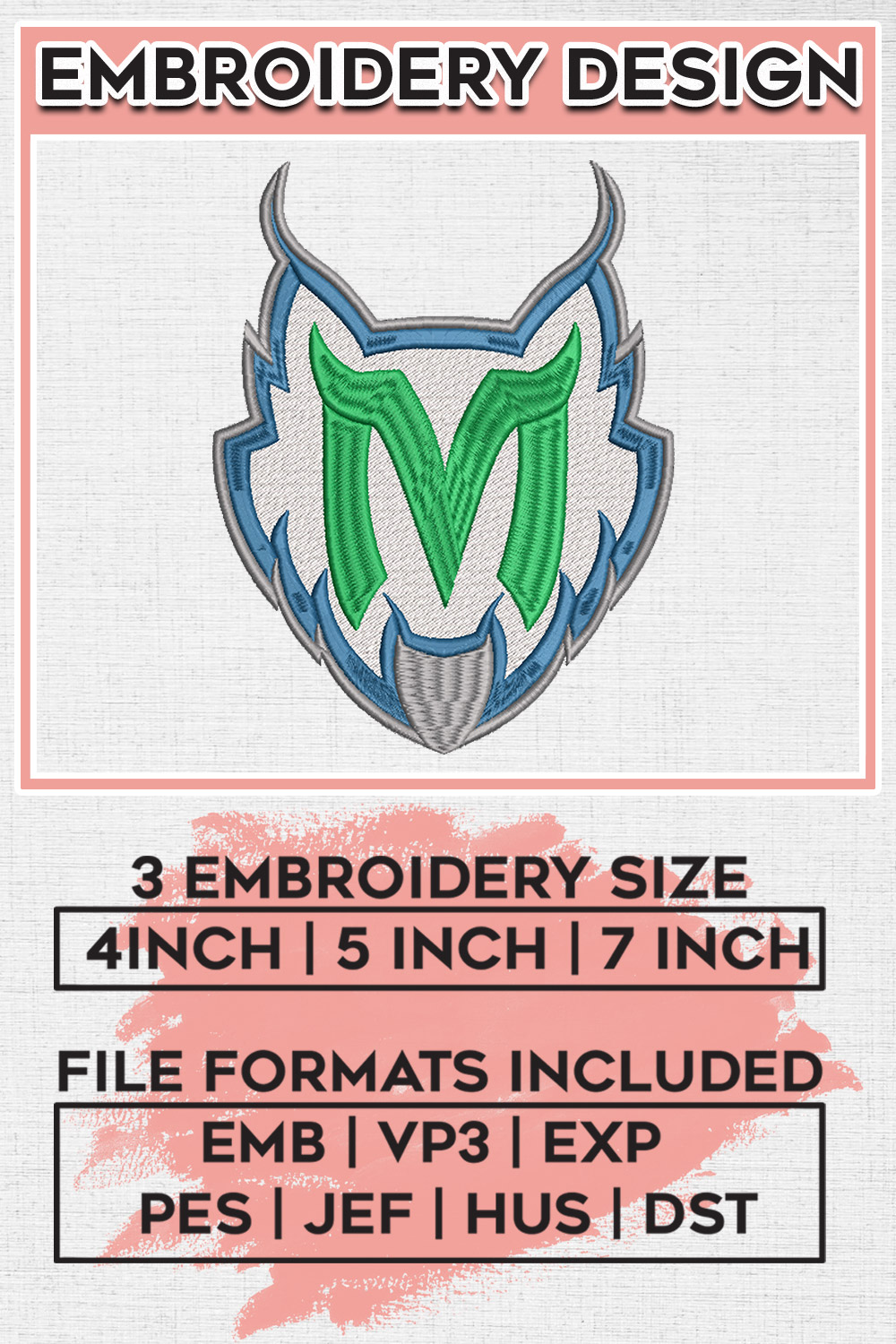 Minnesota Lynx M Head Mascot Embroidery Files, WNBA Minnesota Lynx Team Embroidery Designs, WNBA Basketball Teams, 3 sizes, Machine embroidery designs, Digital Download