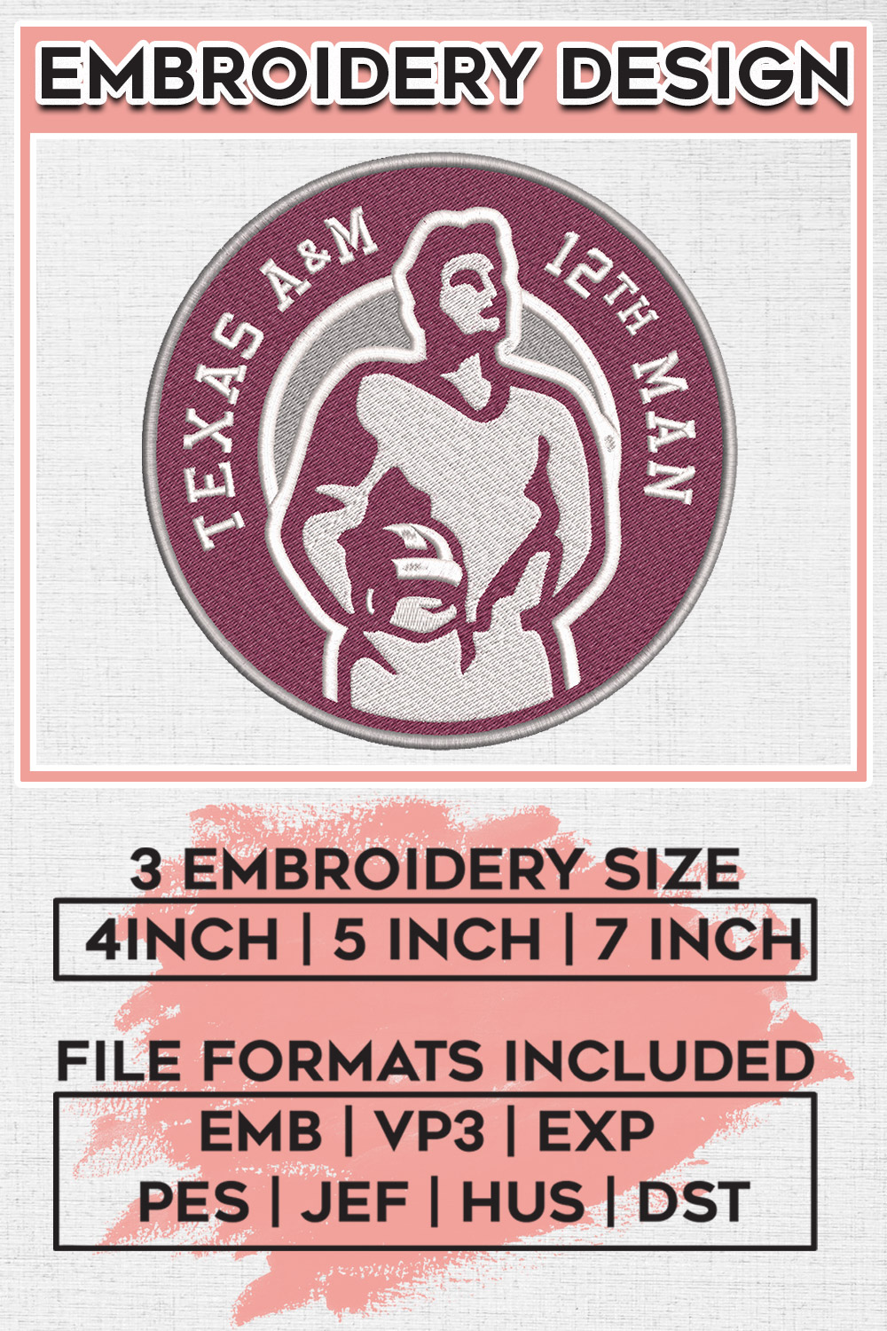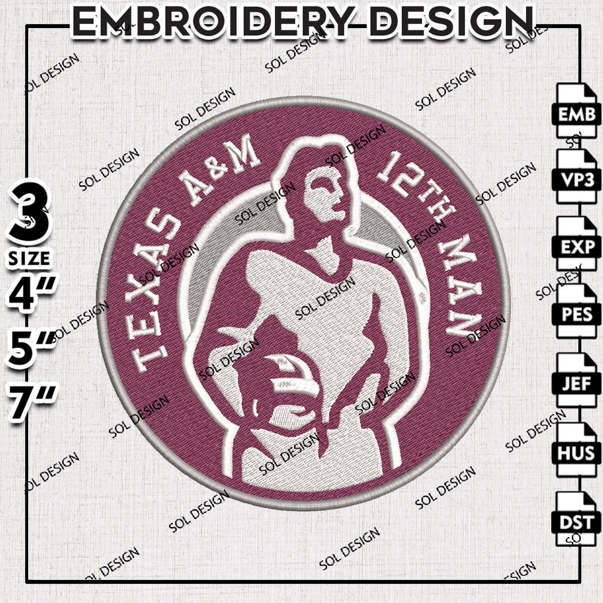 NCAA Texas A&M Aggies NCAA Football Team Round Logo Embroidery Designs, NCAA Texas AM Aggies Machine Embroidery Files, NCAA Logo embroidery designs, NCAA Texas AM Logo, Digital Download