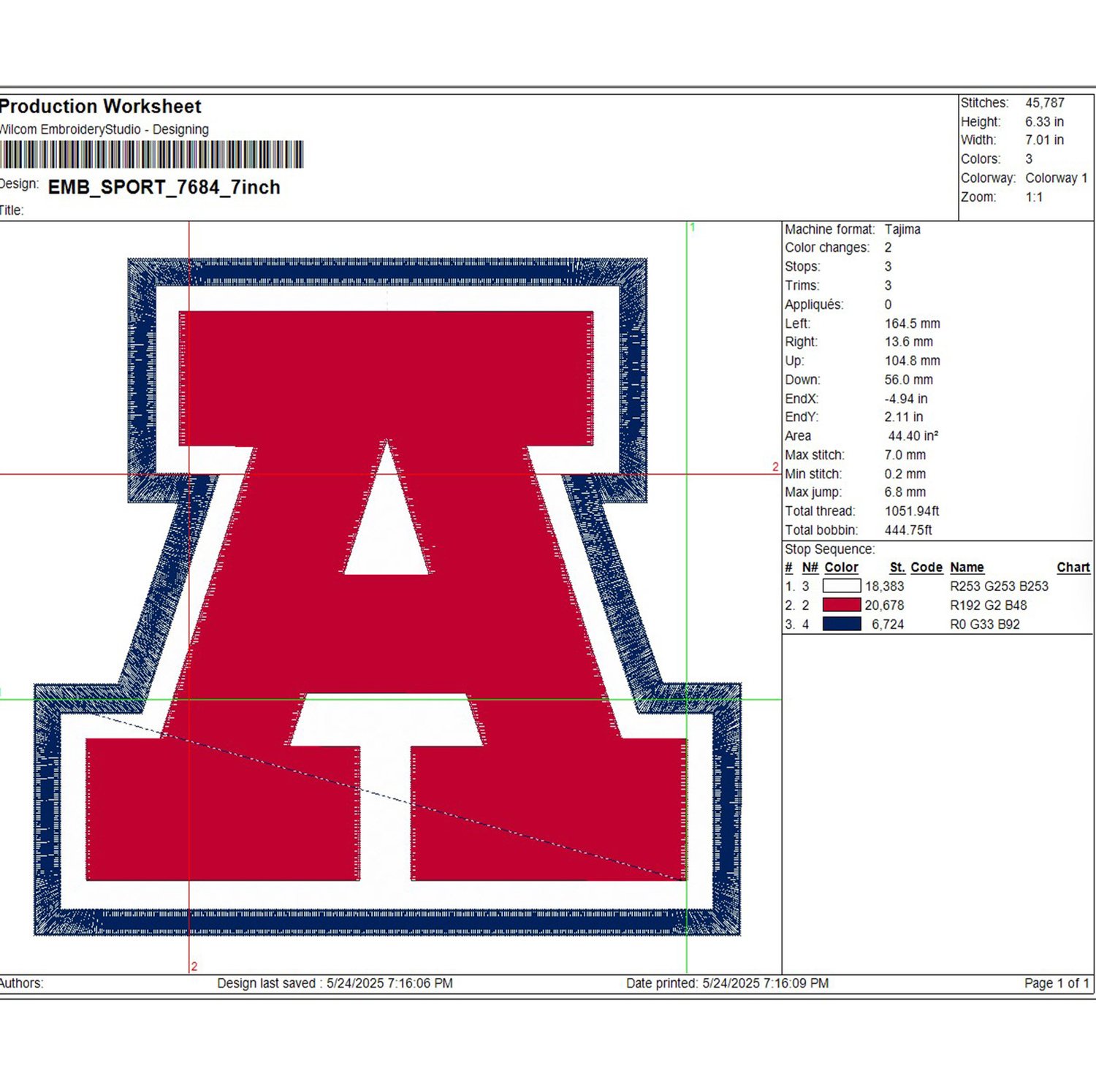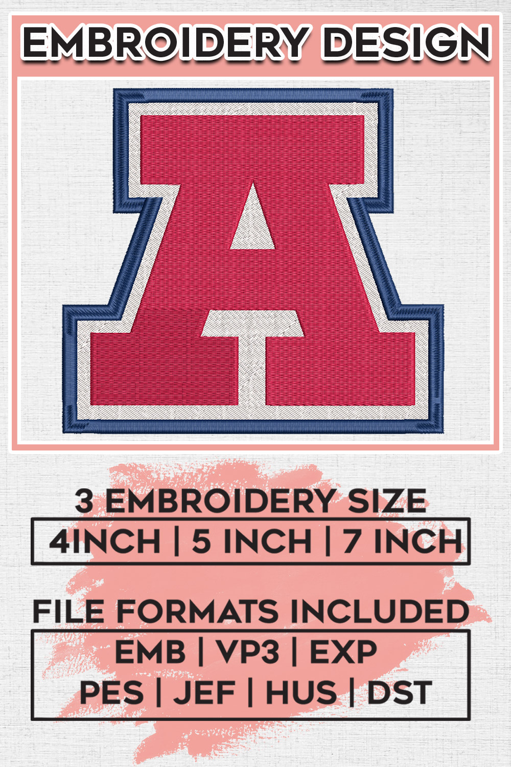 Arizona Wildcats NCAA Football Team A Letter Logo Embroidery Designs, NCAA Arizona Wildcats Machine Embroidery Files, NCAA Logo embroidery designs, NCAA Arizona Logo, Digital Download