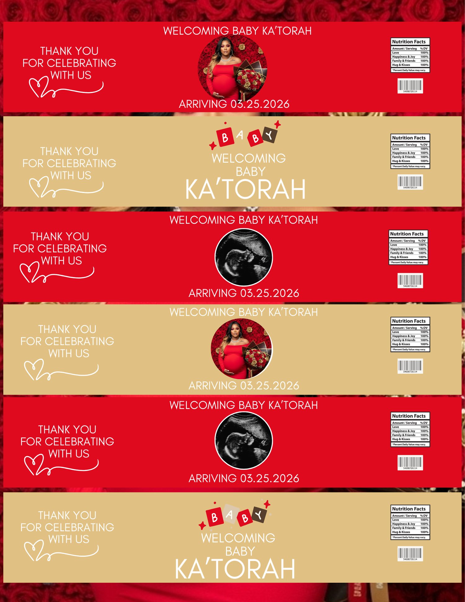 Editable Baby Shower Water Bottle Labels – Canva Template (8.38 × 1.65)